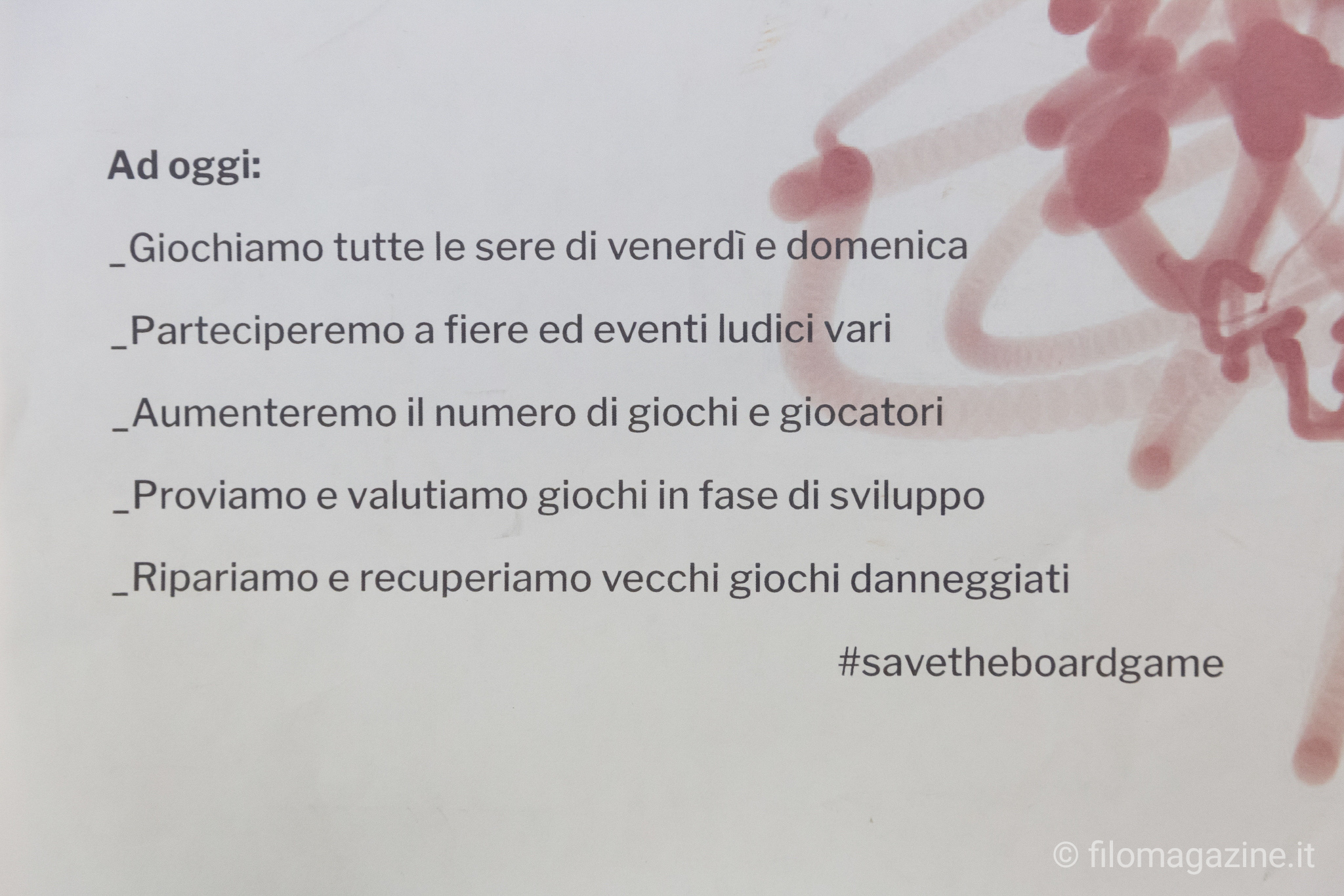 Luca mi racconta che mensilmente viene stilato un programma: solitamente il venerdì sera e la domenica pomeriggio sono dedicati ai giochi di società, mentre il martedì ai giochi speciali e agli unboxing, dalle 21. Qualche domenica è destinata ai giochi di ruolo; chiedo se organizzano sessioni di Dungeons&Dragons, mi rispondono con un sorriso complice che significa evidentemente “non c’era alcun bisogno di domandarlo”. Nelle parole dei ragazzi, che raccontano i loro progetti presenti e futuri, si percepisce veramente una grande passione. Negli anni di attività, l’associazione ha supportato giovani giocatori permettendogli di arrivare a partecipare ad eventi nazionali ed internazionali.