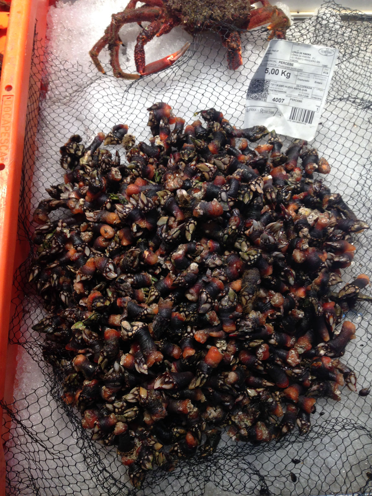 Roberto Vidal ci racconta di come pescare questi crostacei sia uno dei lavori più pericolosi che esitano, gli unici strumenti del mestiere sono una muta di neoprene, una specie di scalpello allungato chiamato “ferrada”,una retina da attaccare alla cintura, e ahimè, quasi mai corde di sicurezza. Al domandargli se avesse paura mi risponde quasi indispettito dicendo ”paura no, ci sono giorni in cui l’oceano ti impone rispetto ma paura no, lo faccio da quando avevo 17 anni, se hai paura non vai.” E pensare che questo lavoro, tradizionalmente parlando, era svolto principalmente da sole donne che con un paio di jeans e tanto coraggio affrontavano l’oceano senza troppi dubbi. Il buttarsi in mezzo alle imponenti onde incalzanti vale ovviamente il suo prezzo seppur a guadagnarci veramente siano soprattutto gli intermediari e non i percebeiros che rischiano la vita ogni giorno. Il prezzo nel periodo di Natale dell’anno scorso ha raggiunto infatti l’incredibile cifra di duecentosessanta/trecento euro al chilo e comunque sia il valore in periodo non festivo si aggira intorno ai trentacinque e i quaranta euro al chilo.