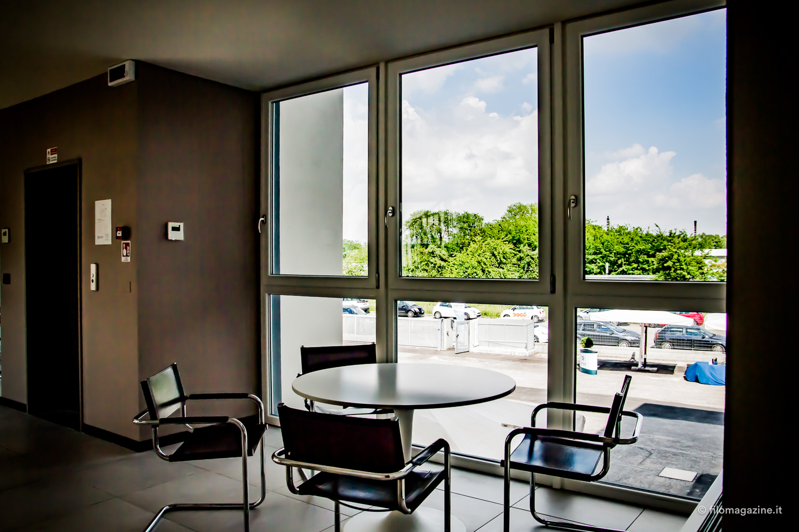 Appena entrata al banchetto dell’accettazione comunico il mio nome e mi viene fornito un braccialetto colorato, utile per fare a gruppi il tour all’interno della nuova sede. Attorno a me persone eleganti dappertutto e proprio di fronte ai miei occhi un bellissimo e modernissimo edificio dalle pareti di una tonalità grigio chiaro che emana una luce irradiante. Ovviamente non vedo l’ora di entrare a curiosare.