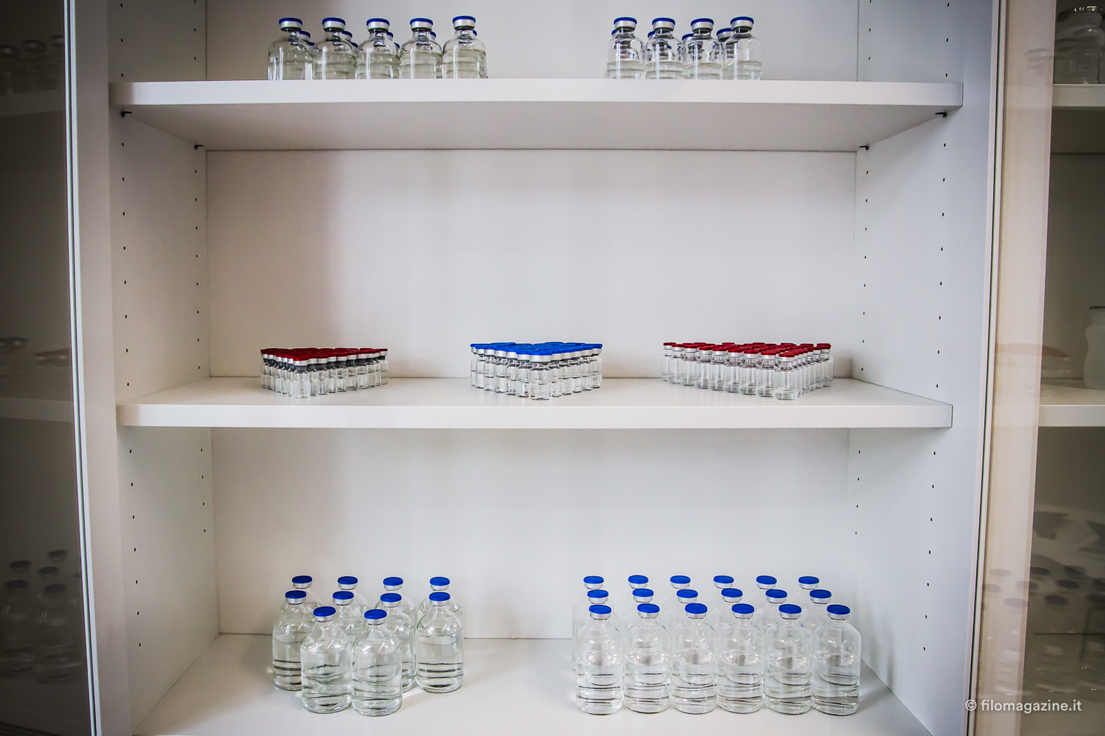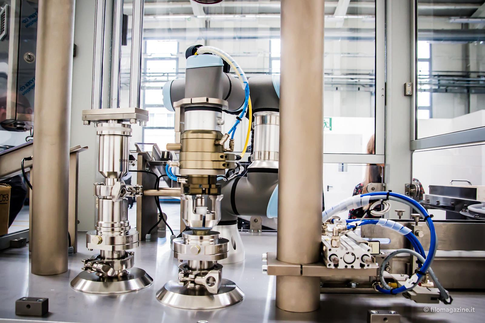 Il nostro tour termina da dove siamo partiti, la grande stanza bianca iniziale è anche il laboratorio di Ricerca e Sviluppo e l’area di collaudo. Nel primo vengono effettuati gli sudi di fattibilità su nuovi prodotti, testate nuove tecnologie e valutate le performance degli algoritmi di controllo visivo e dei nuovi sistemi che verranno installati all’interno delle macchine. L’area di collaudo macchine, invece è suddivisa in due parti: le macchine del settore farmaceutico e le macchine del settore food and beverage, metallico e cosmetico. In quest’area possono essere collaudate fino a 14 macchine contemporaneamente. Una volta terminata la fase di collaudo e di accettazione con il cliente, le macchine vengono portate nell’area di stoccaggio e preparate per la spedizione in tutto il mondo. Osservo stupefatta queste enormi macchine in movimento e ne resto affascinata, pensando a quanto lavoro ci sia davvero dietro ad un meccanismo così perfetto.