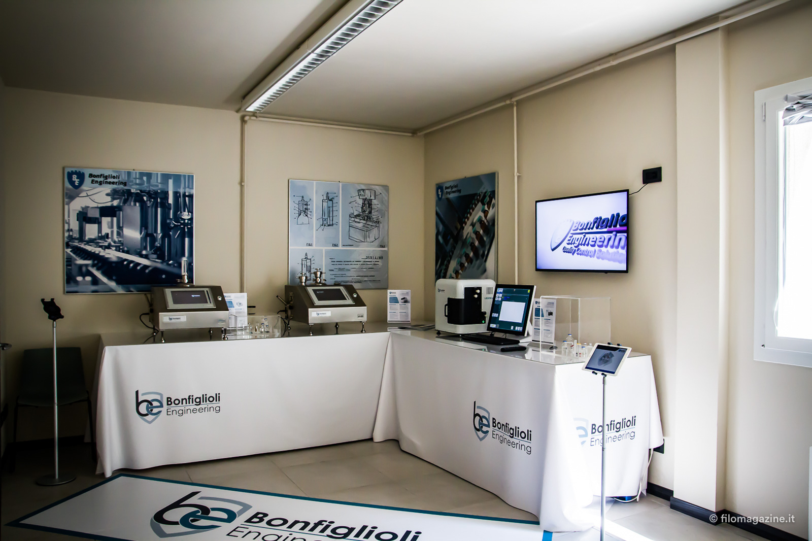 In un’azienda di questo calibro non poteva mancare uno show-room, una concezione nuova per Bonfiglioli Engineering. Permette di mostrare i contenitori che vengono testati e l’intera gamma di macchine prodotte in base alle specifiche del cliente, tramite app e monitor che ne spiegano e simulano il funzionamento.