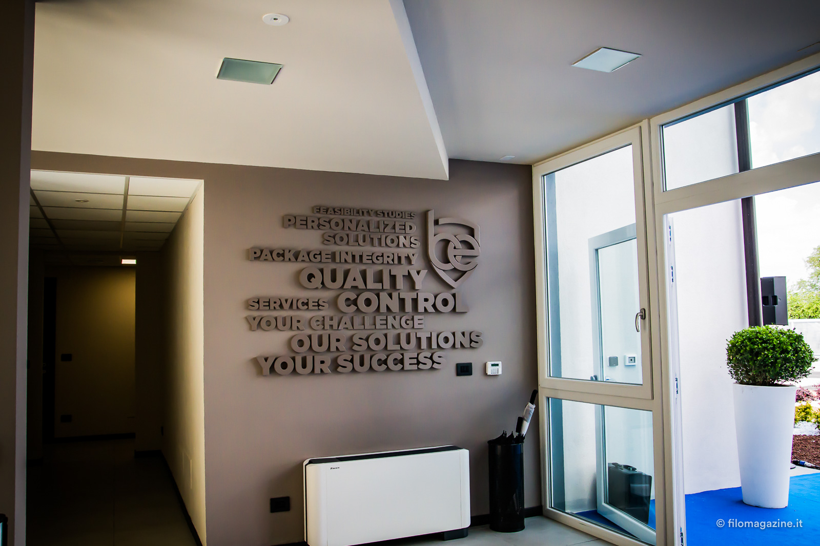 A fare gli onori di casa per il taglio del nastro c’è Andrea Cavanna, direttore generale dell’azienda: racconta di come Bonfiglioli Engineering sia nata ben 45 anni fa a Vigarano Pieve e di come negli ultimi anni abbia avuto una crescita impressionante in ogni suo settore, arrivando a contare oggi circa 80 dipendenti, con agenti in tutto il mondo e entrando a far parte della famiglia americana TASI Group. Il nuovo stabile – spiega – nasce sull’area di un fabbricato esistente, seppure completamente rinnovato secondo i più moderni criteri costruttivi, evitando di occupare anche solo pochi metri in più del terreno intorno. A testimonianza del fatto che sviluppo industriale e attenzione all’ambiente possono convivere e non sono nemici. Dopo i ringraziamenti di rito delle autorità accorse per l’occasione, entriamo finalmente nello stabile.