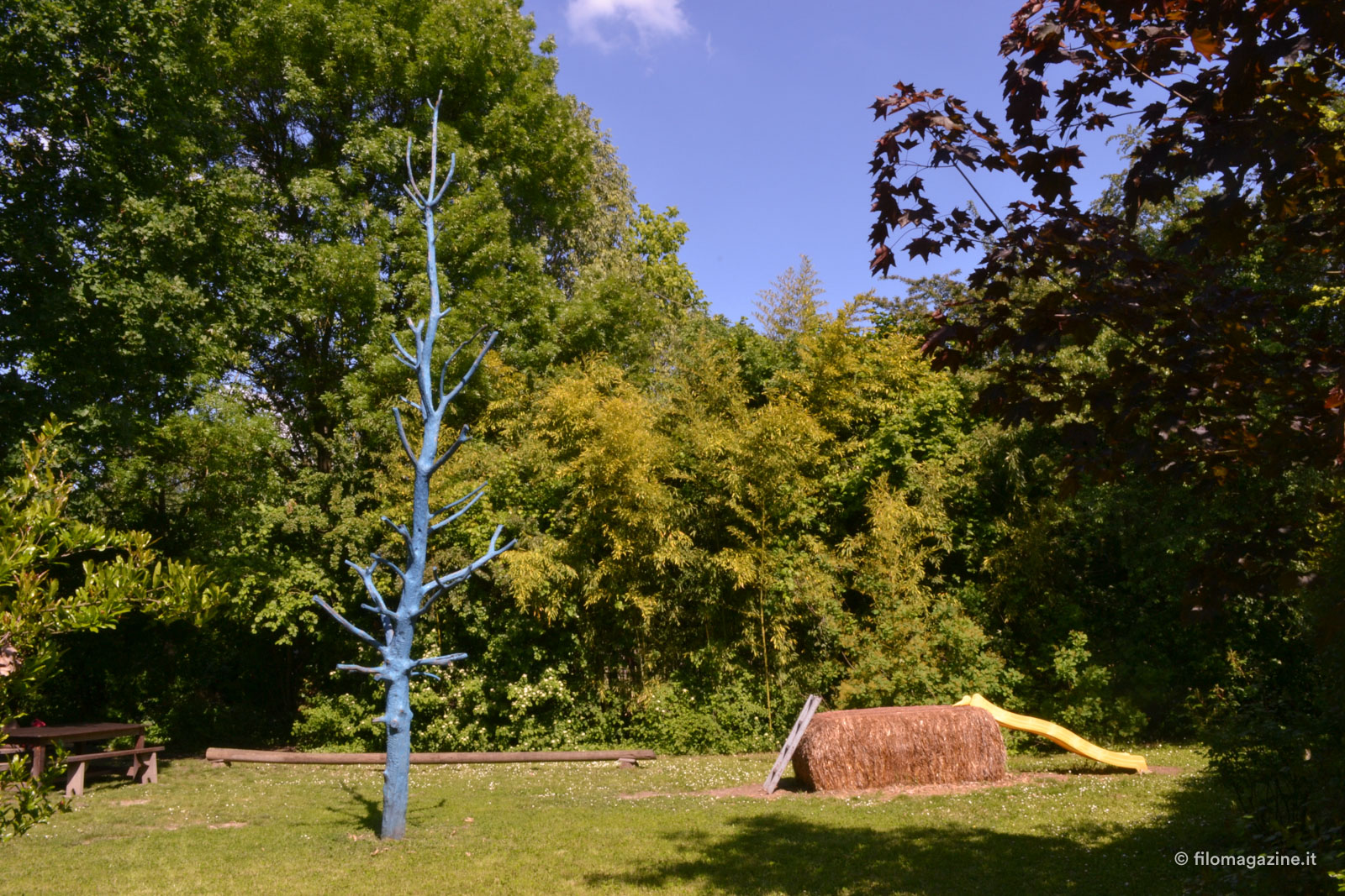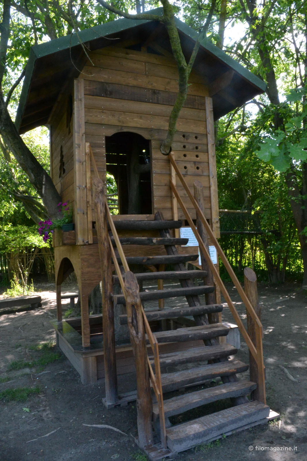 Giardini coltivati, siepi che nascondono un sentiero che porta ad una casa sugli alberi esplorabile con tanto di percorso sospeso, un’ampia area dedicata alla produzione di miele con migliaia di api, una falegnameria, un giardino predisposto per mantenere vive piante ormai in via di estinzione.