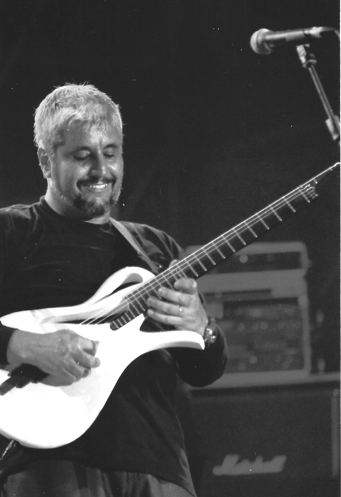 Quello di Stevie Ray Vaughan a Pistoia Blues: lo guardavo quasi senza scattare fotografie, colpito dalle magie che scaturivano dalla sua Fender Statocaster, anche lui quella sera pareva essere in un altro luogo, suonò aprendo gli occhi pochissimo. Una settimana dopo ebbe un incidente fatale precipitando con un elicottero, e si trattò di una tragica coincidenza perché quel volo doveva trasportare non lui ma bensì Eric Clapton. Mi porto dentro il suo blues come un inno alla vita. Ma devo citare anche Enzo Jannacci a Ferrara, nel cortile del Castello. Prima del concerto gli chiesi se avessi potuto fotografarlo, lui acconsentì ma poi mi prese in mezzo per tutta la serata. Mi diceva: ‘fammi capire, sei geometra e fai il fotografo?’. Gli risposi ‘anche tu sei medico e fai il cantante!’.