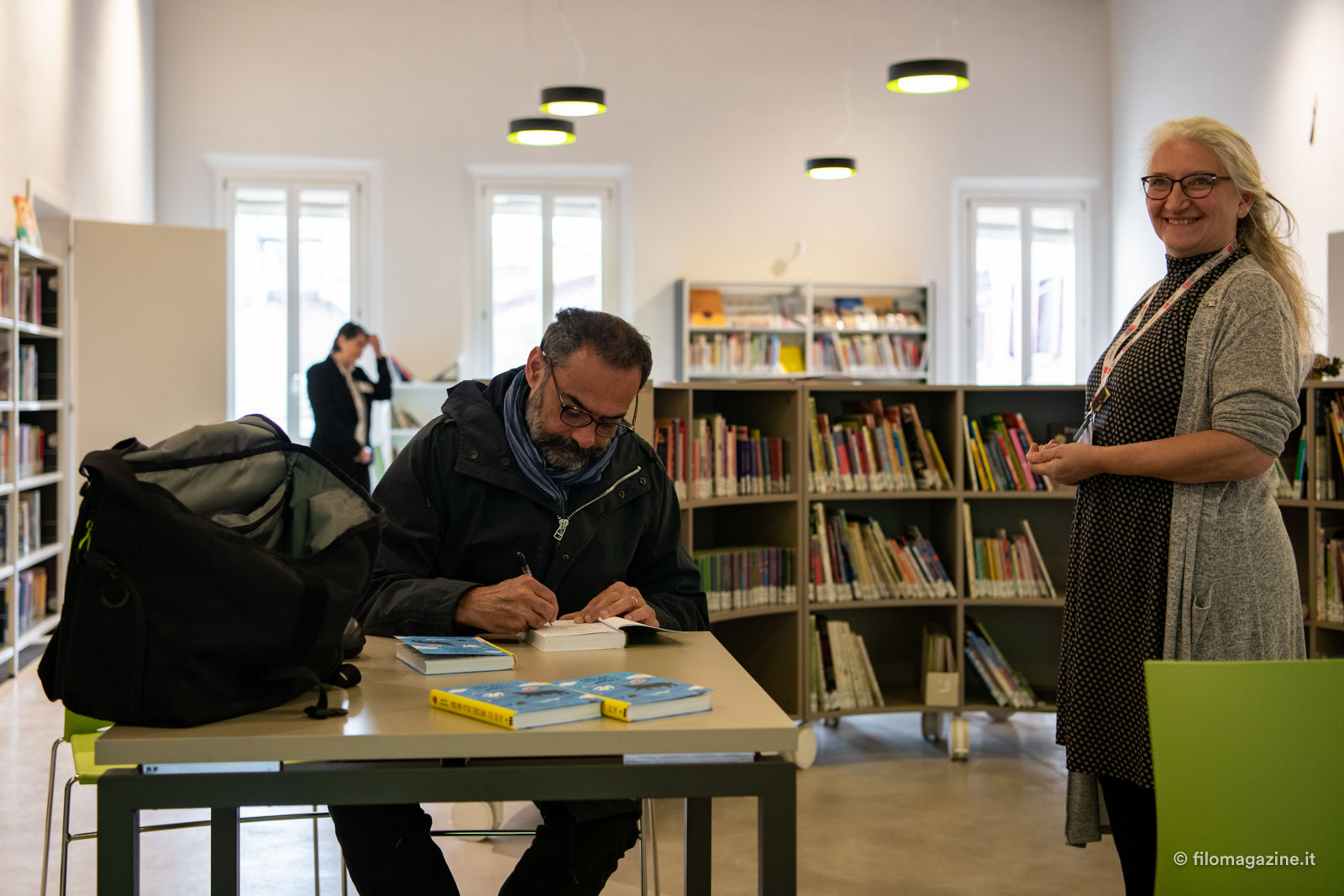 Mentre mi perdo tra l’interminabile distesa di titoli che mi ricordano l’infanzia e immortaliamo alcune delle illustrazioni realizzate e donate alla biblioteca dai ragazzi del Dosso Dossi, veniamo richiamati all’ordine. C’è una sorpresa.