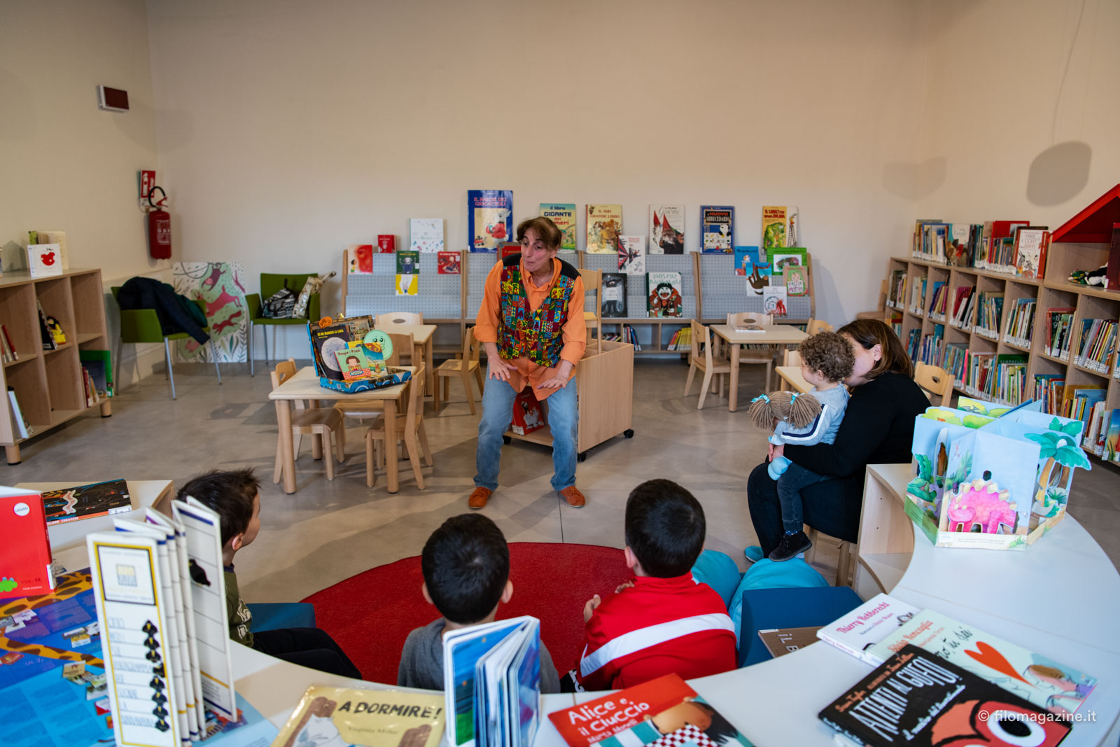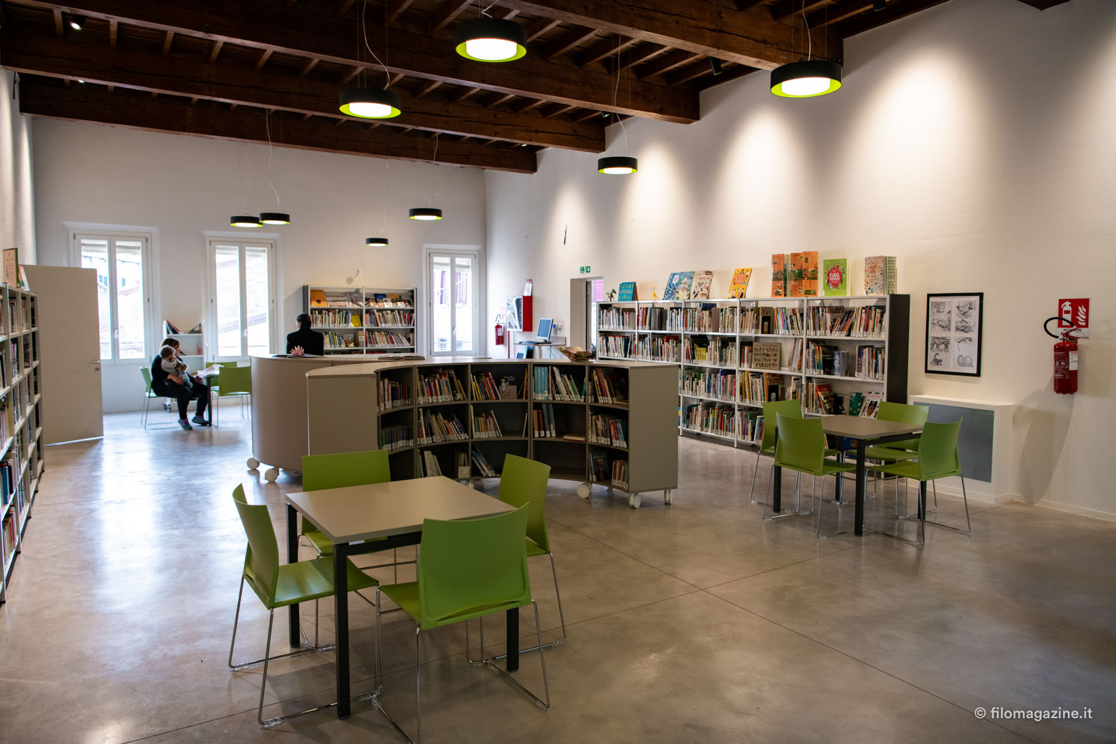 “Abbiamo pensato di creare degli ambienti che potessero rispecchiare le esigenze e le fantasie degli utenti di tutte le età!” Cominciando da uno spazio per i bimbi più piccoli, che potranno orientare le loro scelte su un ampio ventaglio, dalle favole di Esopo ai libri pop-up, ai giochi creativi (da svolgere, perché no, seduti sullo spazio morbido a disposizione), attraversiamo altre sale, una dedicata agli studenti delle primarie e delle secondarie inferiori, l’altra agli adolescenti: c’è da perdersi!