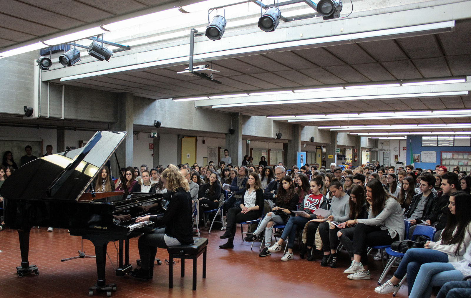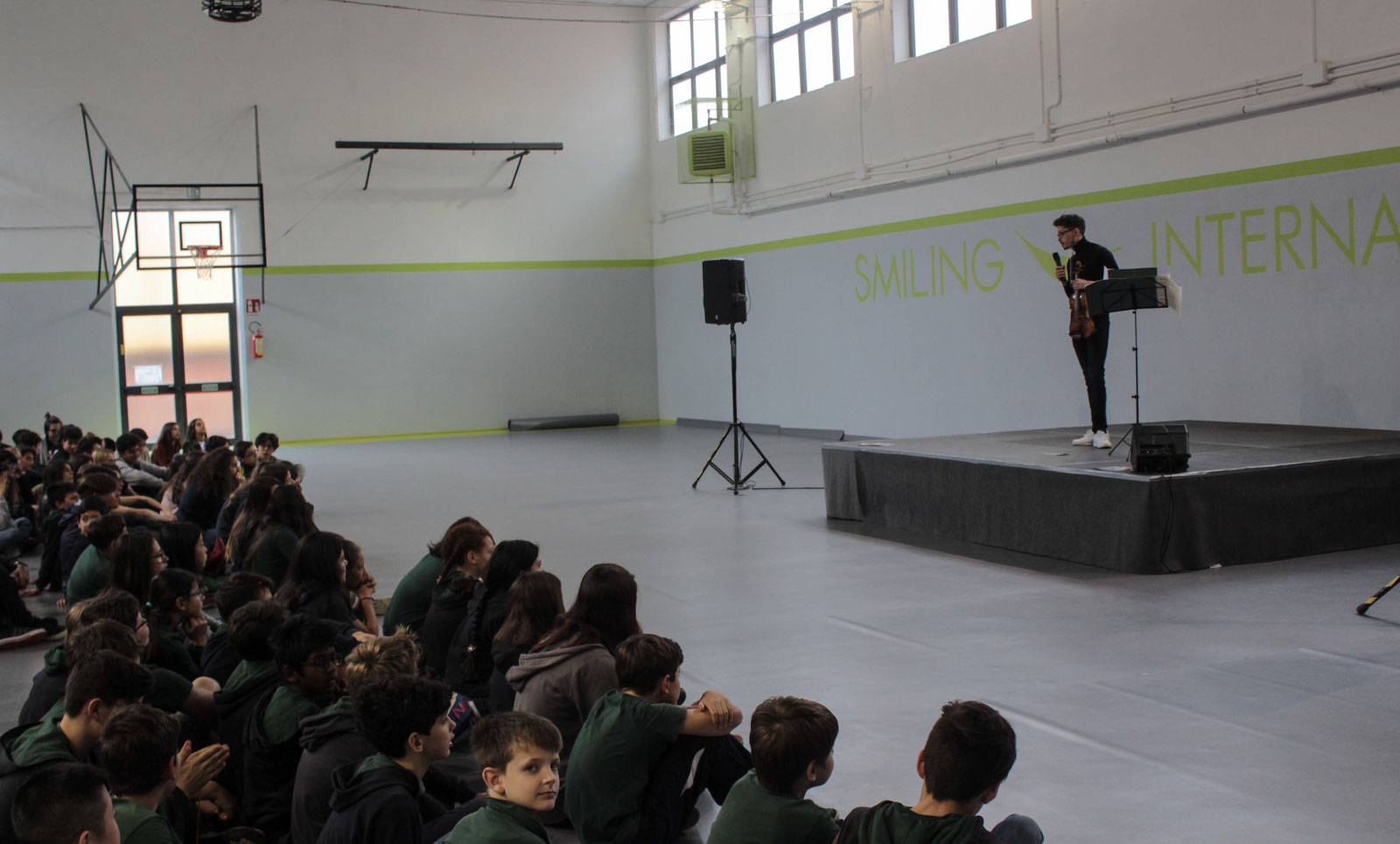 “Quindi, per operare un cambiamento, da dove iniziare se non dai germogli della nostra società? Dal 2016 abbiamo iniziato a mettere le basi di uno dei progetti di Lauter, indirizzando il nostro sguardo verso le scuole. Non puntavamo a realizzare qualcosa definibile con le parole “educazione musicale”: volevamo spingerci oltre, riuscire a catturare l’attenzione dei giovani. Iniziando dal liceo Roiti, che ho frequentato, e continuato poi con altri istituti secondari tra i quali il Carducci, lo Smiling, il Bachelet, l’Ariosto, abbiamo pianificato delle attività per coinvolgere i ragazzi: con la preziosissima collaborazione dei docenti, siamo riusciti a costituire dei Gruppi formati da una decina di studenti, selezionati in base a una serie di criteri ma non sempre musicisti in erba, il cui “compito” era quello di curare l’organizzazione di un concerto negli ambienti del loro quotidiano scolastico, al quale noi siamo stati invitati a esibirci individualmente, e di illustrare ai compagni l’intero progetto invitandoli così a teatro per ascoltare il nostro concerto finale in quintetto. L’impegno profuso è stato oltremodo emozionante e vedere la curiosità e la naturalezza con la quale un pubblico così giovane si è rapportato con dei musicisti di fama internazionale, cercando vie di comunicazione in lingue diverse e comprendendosi sempre, ci ha regalato una felicità inaudita.