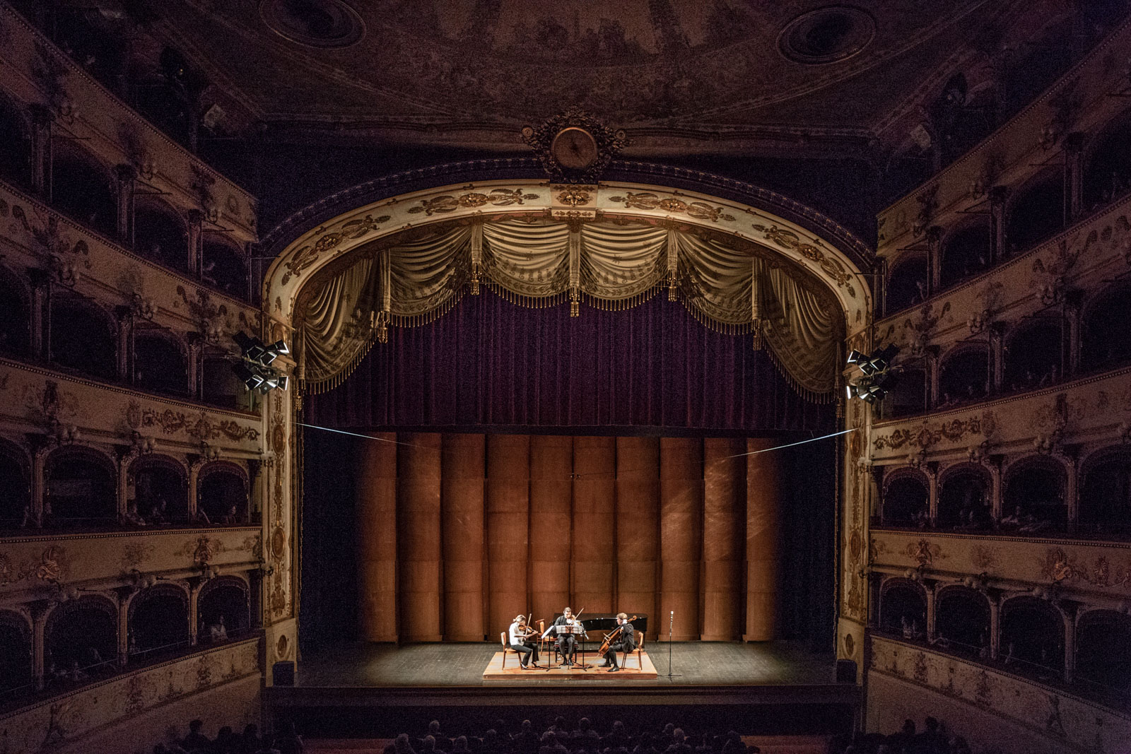 Oggi, a tre anni dalla pianificazione e dal coinvolgimento dei liceali, contiamo 15 workshop e 27 concerti nelle scuole con un pubblico di oltre 3000 studenti, 4 concerti sold out al Teatro Comunale Abbado – in collaborazione con Ferrara Musica – con (rullo i tamburi) 2000 under 30. Not bad! A conclusione di questo viaggio in gemellaggio con le scuole della città, il 13 maggio ci sarà un concerto speciale, al quale sono invitati non solo i ragazzi e gli abbonati di Ferrara Musica ma tutti coloro che hanno il desiderio di perdersi un po’ con noi. Sarà una serata speciale, un omaggio alla città e alla mostra Boldini e la Moda, ospitata fino al 2 Giugno al Palazzo dei Diamanti. Ma per adesso, nessuna anticipazione. Tendete l’orecchio, ascoltate cosa suona nell’aria e vi sveleremo qualche altro dettaglio molto, molto presto!”