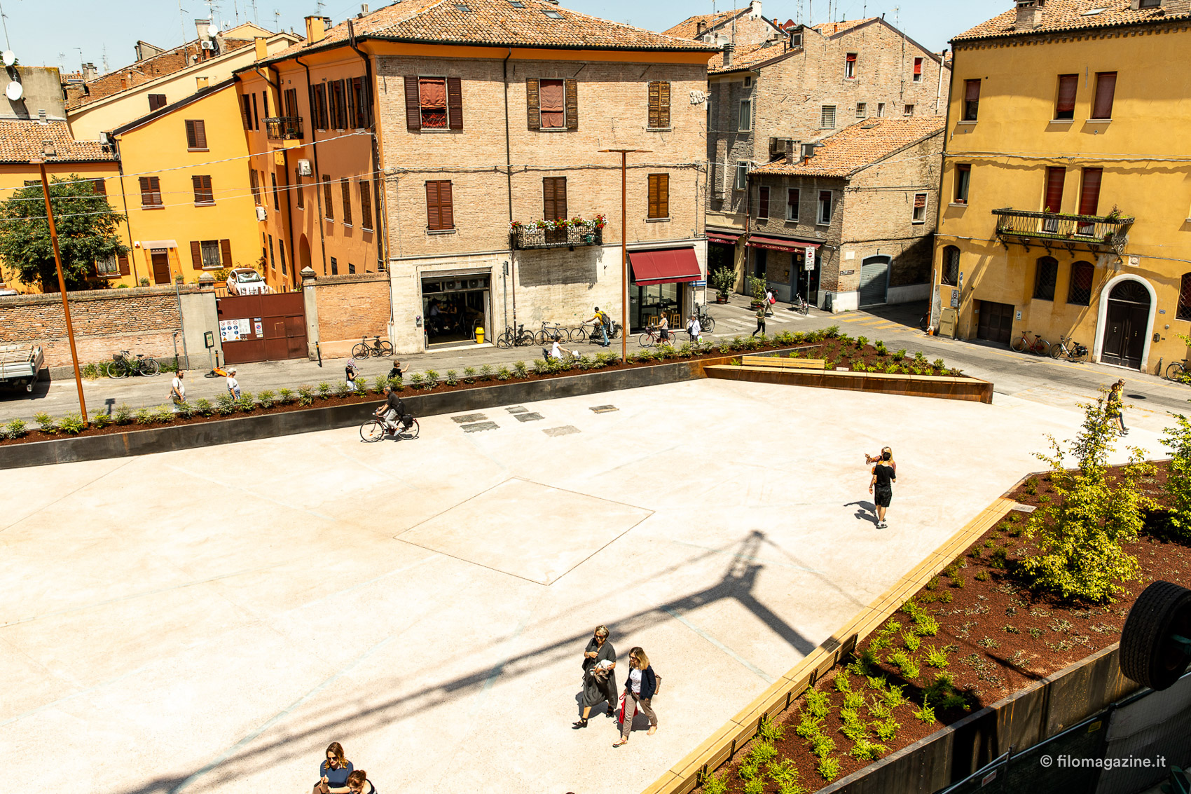 Ferrara è una città che negli ultimi anni ha visto moltiplicarsi iniziative organizzate da associazioni, privati, gruppi spontanei di cittadini, vicinati. Avere nuovi spazi vuoti e disponibili significa offrire nuove possibilità a quella parte di città che organizza, inventa e riunisce quell’altra parte di città che alle iniziative partecipa, si incontra, dialoga. C’è un comitato commercianti della zona di Carlo Mayr che non vede l’ora di poter finalmente usufruire di spazi adiacenti alle proprie attività, come già fatto in questi anni in occasione di alcune ricorrenze celebrate lungo la via. C’è una popolazione studentesca che proprio all’incrocio tra Carlo Mayr e via Spronello si ritrova per trascorrere ore spensierate la sera e avrà un po’ di posto in più per farlo, per sedersi, per prendere una boccata d’aria tra un esame e l’altro. Ci sono i residenti con le proprie famiglie che in questa piazza potranno partecipare ad iniziative per bambini, lasciandoli liberi di pattinare, girare in bici, correre.