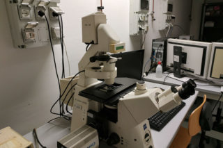 Un’ora circa di visita al Cubo, edificio all’interno del complesso dell’ex Ospedale Sant’Anna, nei laboratori di ricerca. Se si potesse raccontare per immagini sarebbe una di quelle sequenze cinematografiche in cui una voce narrante si muove, senza stacchi, tra spiegazioni scientifiche, laboratori dove giovani studenti ricercano e studiano, microscopi pronti ad analizzare, studenti che si presentano per l’inizio di un tirocinio, chiedono informazioni su risultati oppure li analizzano assieme, mentre a breve iniziano lezioni universitarie ed in seguito sono già in programma altre riunioni.