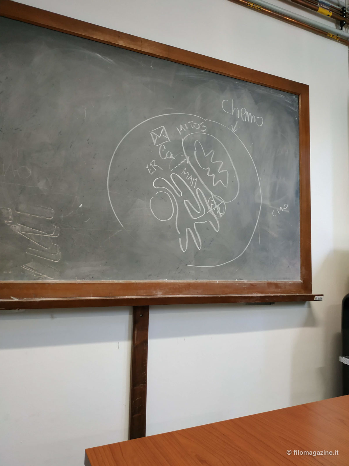 “Perchè è giusto dirlo: in sostanza tutto quello che facciamo è qualcosa in più. Potrei semplicemente insegnare e dedicare un tempo minimo alla ricerca, come fanno tanti, senza che ci sia nulla di male. Ma ho sempre desiderato lavorare a qualcosa che avesse ripercussioni pratiche, tanto che in origine non volevo nemmeno una carriera accademica. Però mi sono (e mi hanno) convinta che era un percorso necessario e adesso, finalmente ci stiamo arrivando”. Carlotta parla velocemente e soprattutto con energia e vitalità, quella luce negli occhi di chi lavora a qualcosa per puro entusiasmo personale, perché ci crede con tutte le sue forze. Alla lavagna c’è ancora una (sicuramente semplificata ma efficace) sintesi del suo lavoro.
