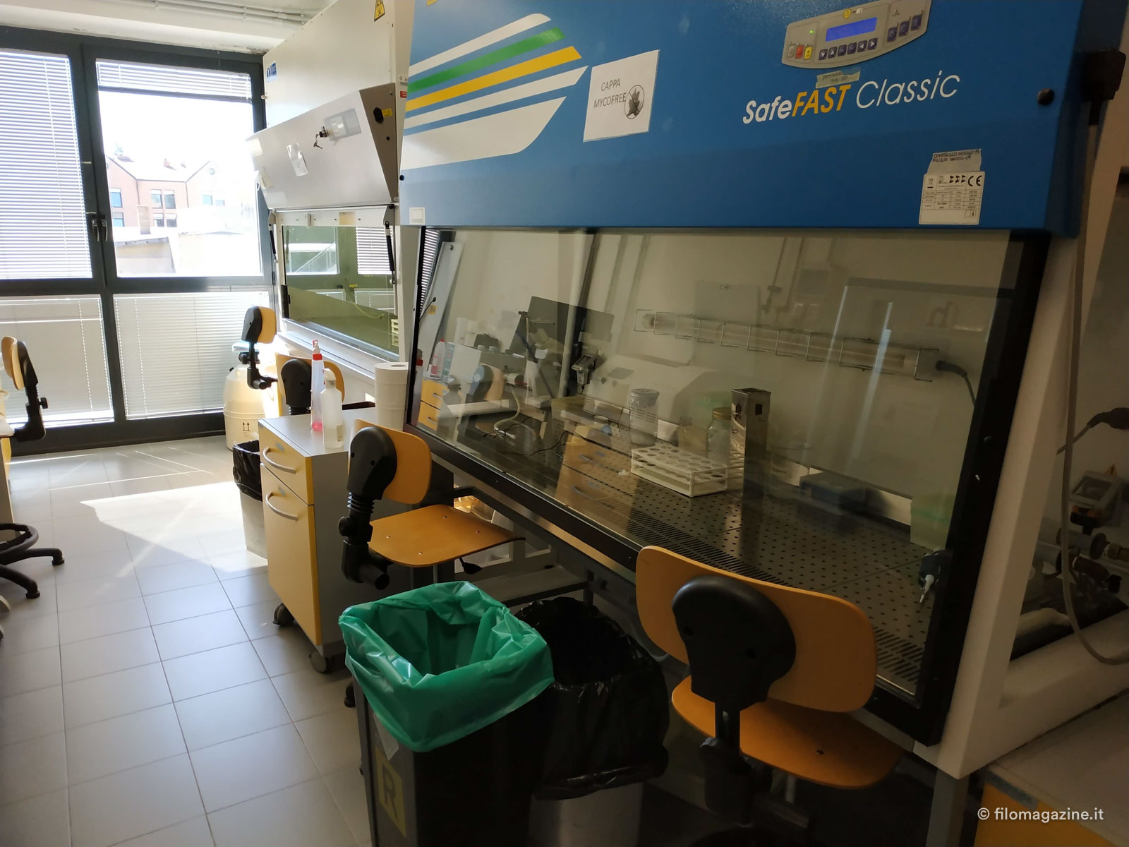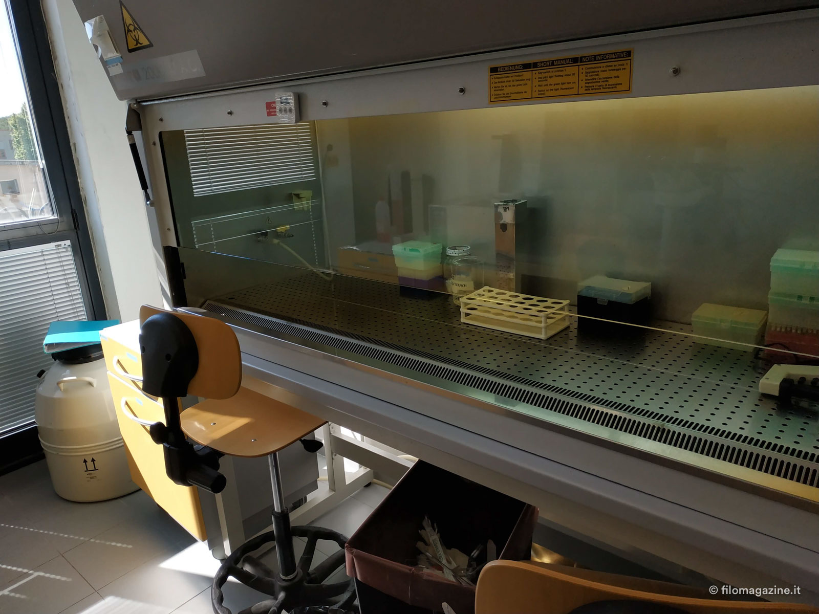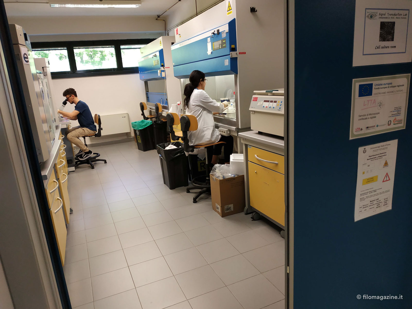 Un’ora circa di visita al Cubo, edificio all’interno del complesso dell’ex Ospedale Sant’Anna, nei laboratori di ricerca. Se si potesse raccontare per immagini sarebbe una di quelle sequenze cinematografiche in cui una voce narrante si muove, senza stacchi, tra spiegazioni scientifiche, laboratori dove giovani studenti ricercano e studiano, microscopi pronti ad analizzare, studenti che si presentano per l’inizio di un tirocinio, chiedono informazioni su risultati oppure li analizzano assieme, mentre a breve iniziano lezioni universitarie ed in seguito sono già in programma altre riunioni.