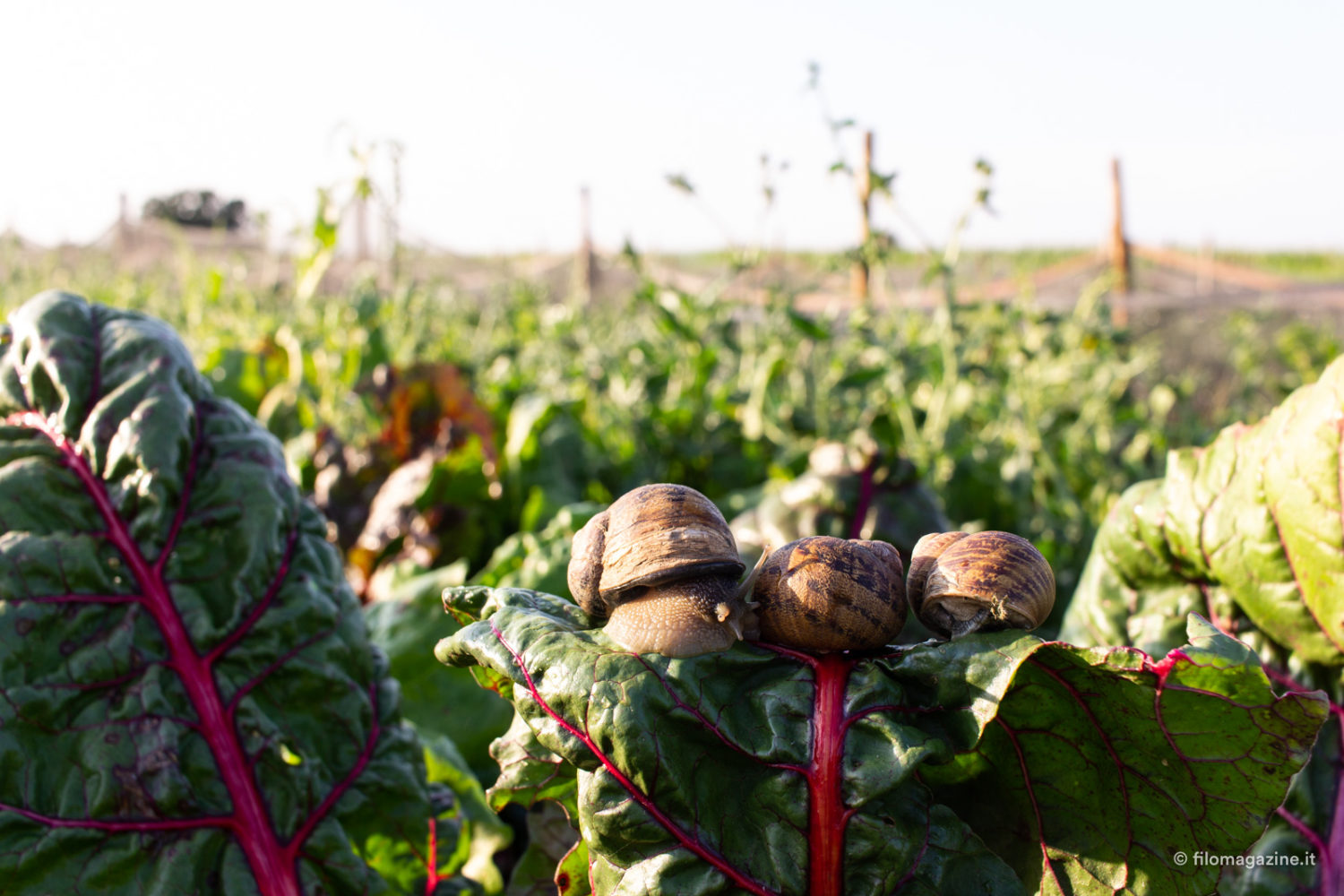 “Mi fa piacere portarvi qui a vedere da dove nasce tutto, cioè dalla terra, capace di darti tanto con poco. Se vi portavo nel laboratorio non avreste capito il senso di tutto questo progetto”, dice Francesco. Ha decisamente ragione, non avremmo ad esempio potuto osservare le piccole corna che uscendo timidamente dal loro guscio cercano di allontanarsi fieramente dai disturbatori venuti a trovarle oggi.