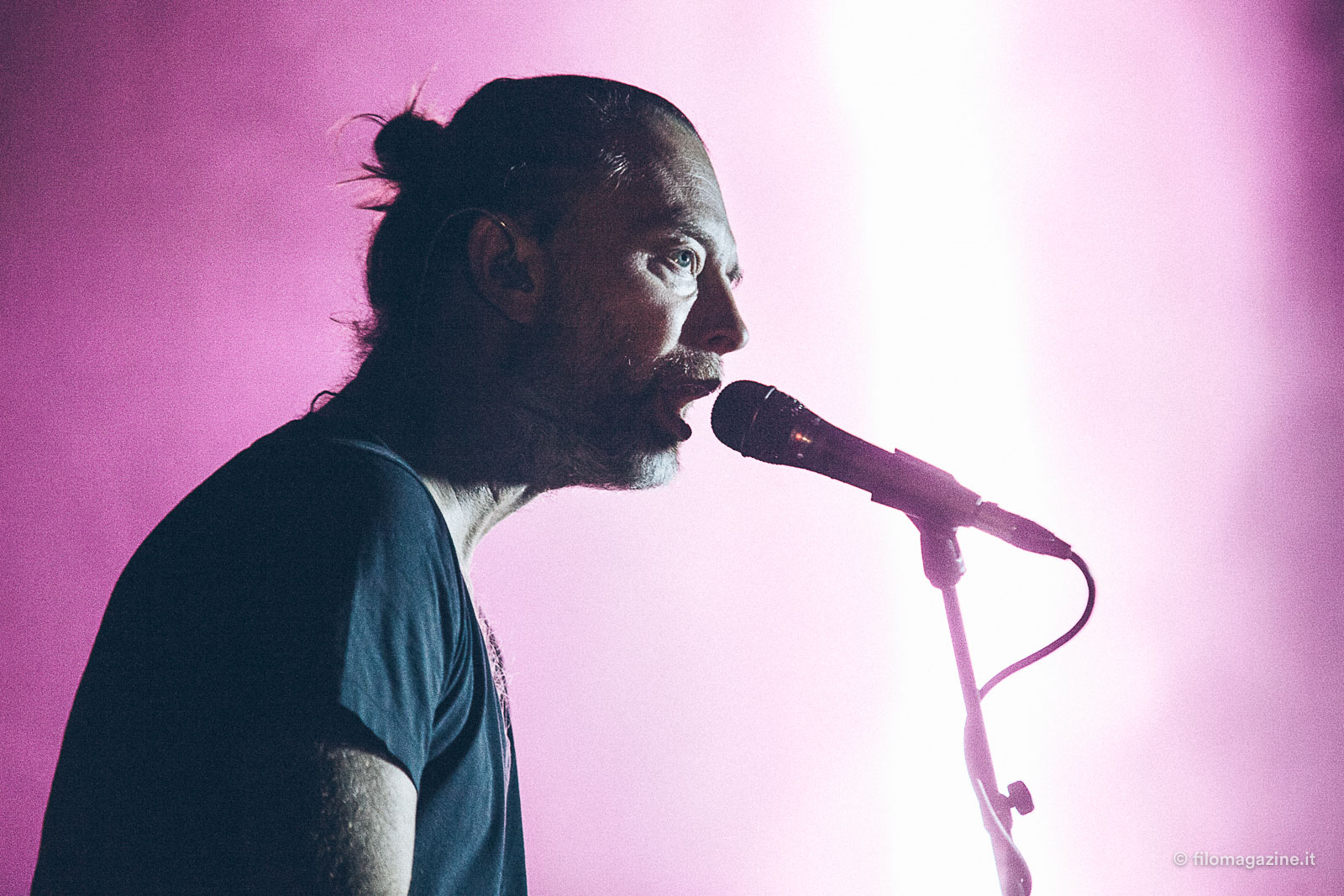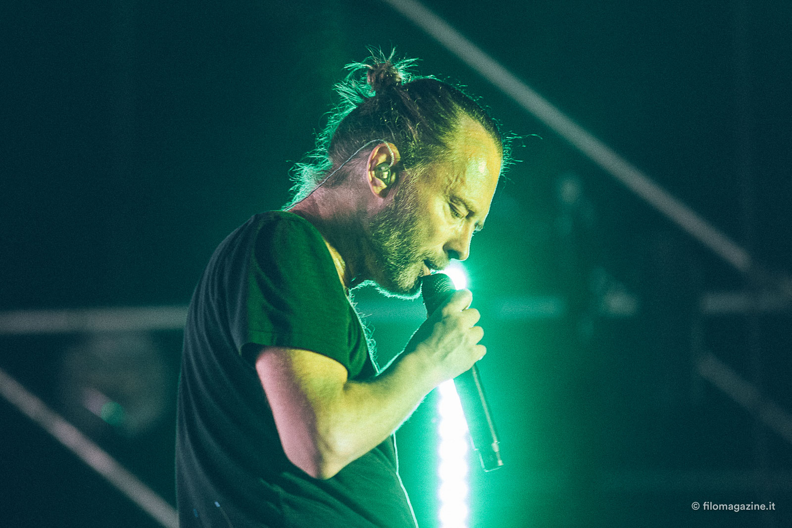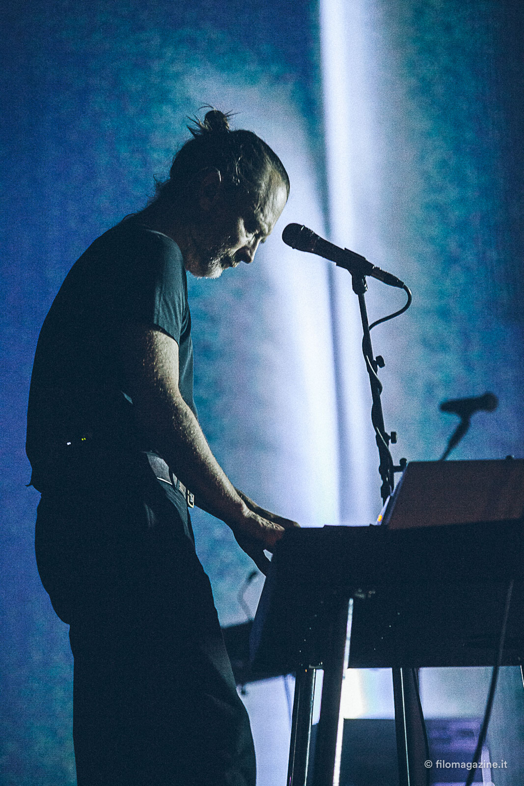 Già nel primo brano, nel primo momento strumentale disponibile Thom Yorke si è spostato sul ciglio del palco per alcuni secondi, sorridente e quasi chiamando gli applausi. Riducendo quella distanza emotiva palpabile negli anni, quando dentro alla band principale ha sempre dato l’impressione di essere in un certo qual modo goffo nei movimenti, chiuso in sé stesso, deciso a lasciare volare quella meravigliosa voce eppure espressione di un disagio emotivo che i Radiohead si sono sempre portati dentro. E che non manca in Anima, vero e proprio manifesto contro ad una società digitale, fredda e insensibile, specie su tematiche su cui occorre intervenire oggi, come l’ambiente.