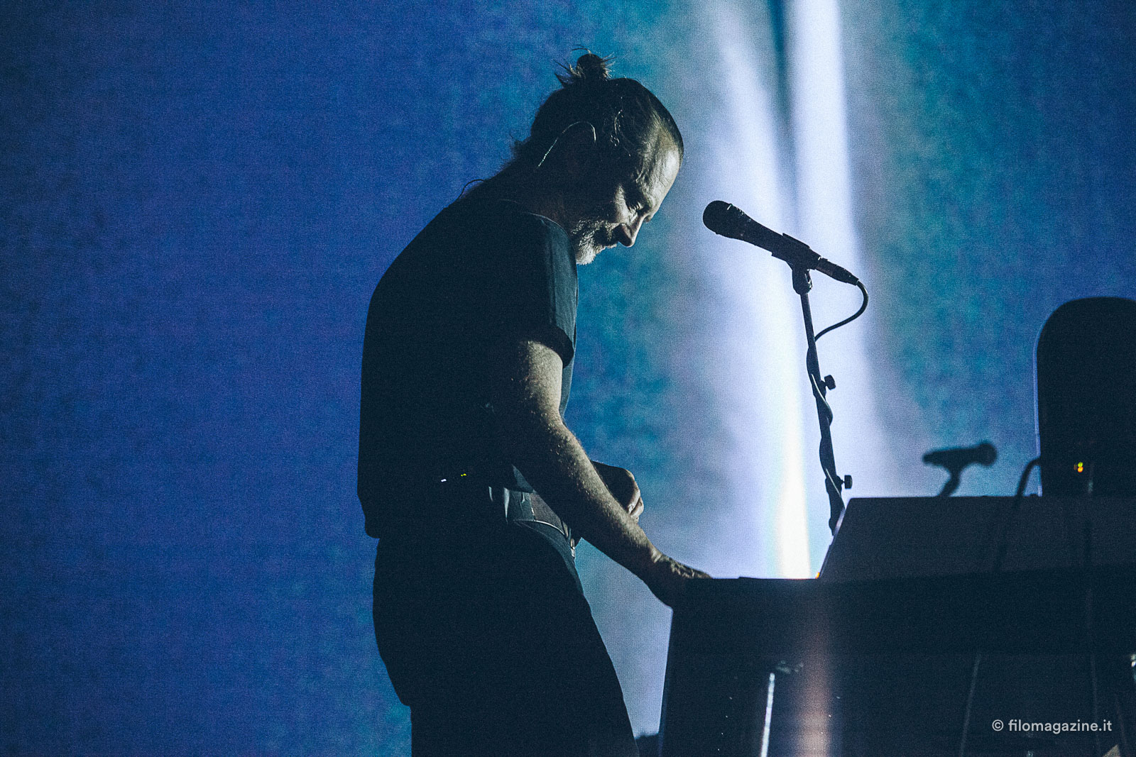 Di fronte ad una folla non indifferente, capace di attraversare tutte le età, lo spettacolo offerto è stato quello di un uomo completamente a suo agio. Tre sul palco, con il fido Nigel Godrich ai suoni e Tarik Barri alla componente visuale, che avvolge da dietro l’intera formazione, per un live che è stato, come su disco, un enorme flusso musicale.