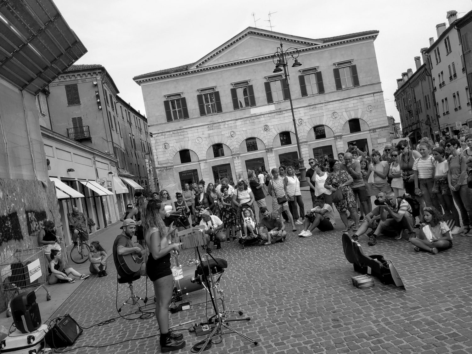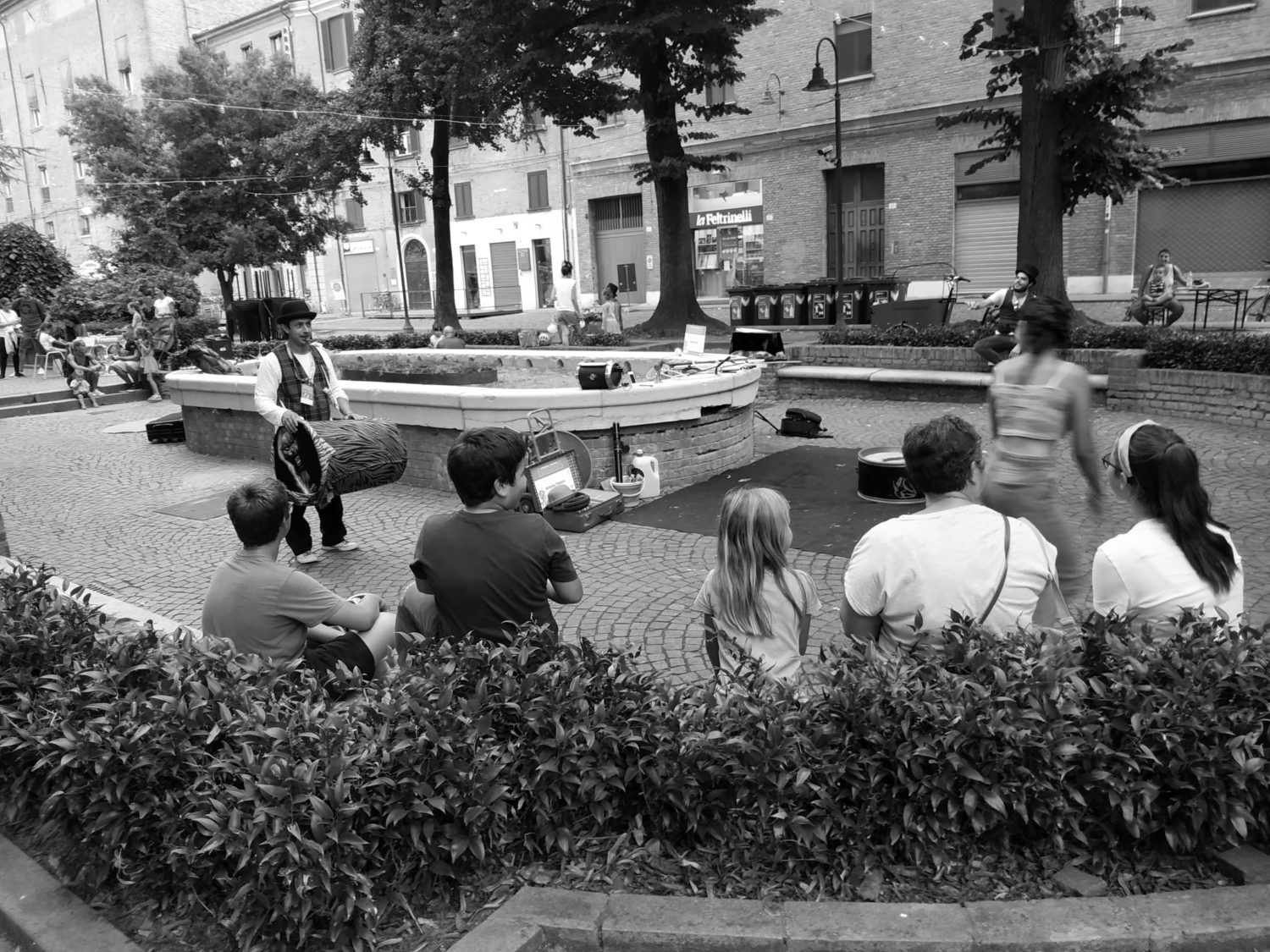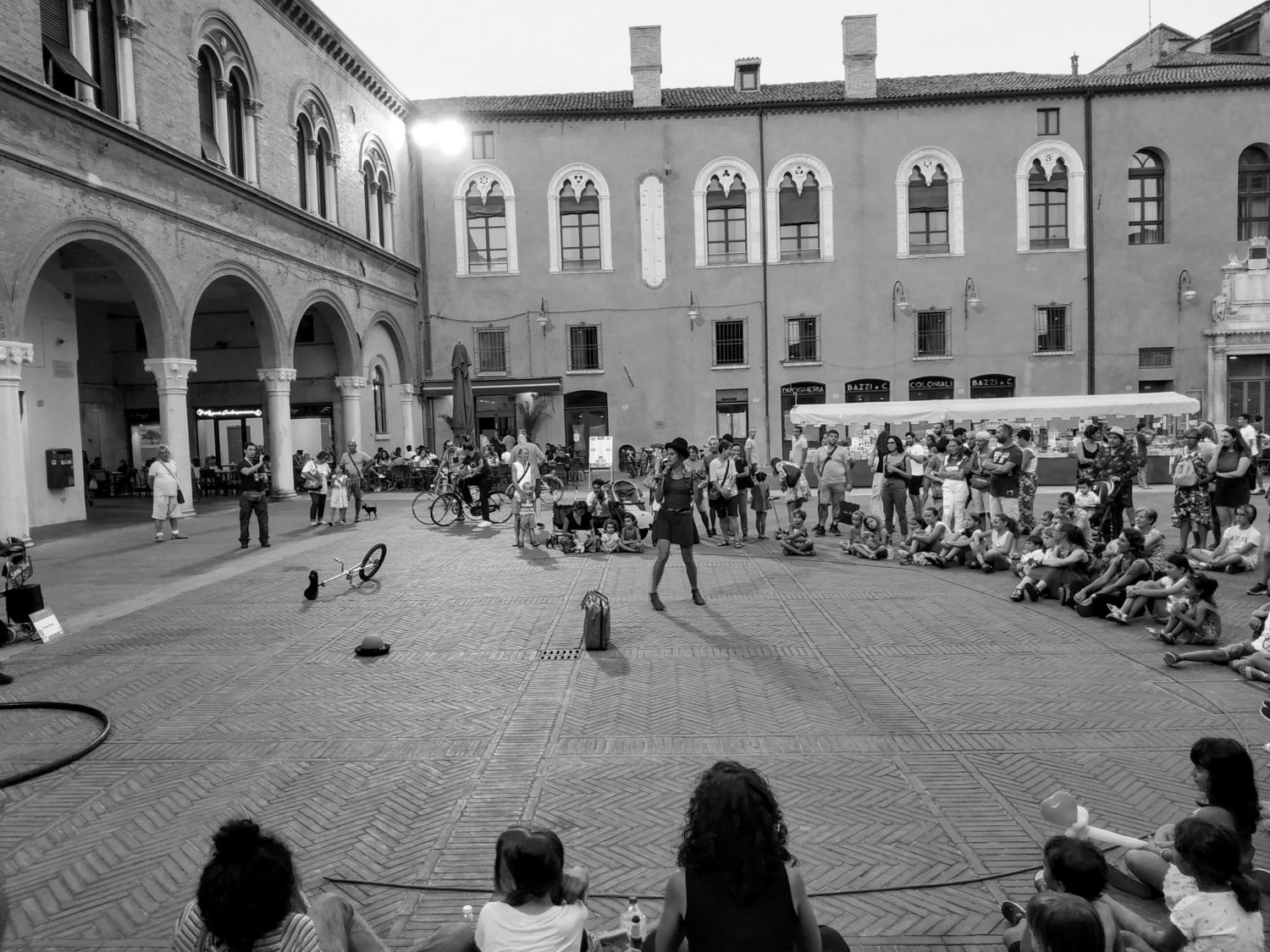 Chi vuole si siede o rimane in piedi, in un semicerchio che distanza di pochissimi metri pubblico e artista, le prime file quasi sempre piene di bambini, dietro genitori, turisti, cittadini. Il codice non scritto che prevede l’applauso prima, durante e dopo. I più piccoli che portano le monete dentro al cappello con un grande gesto solenne, un dono ad uno sconosciuto che ha portato la propria arte. Durante i numeri di piccolo circo, piccola magia o umorismo spesso senza parole, si trova sempre qualcuno disposto a mettersi in gioco, a farsi prendere in giro diventando protagonista dell’esibizione di qualche sconosciuto.