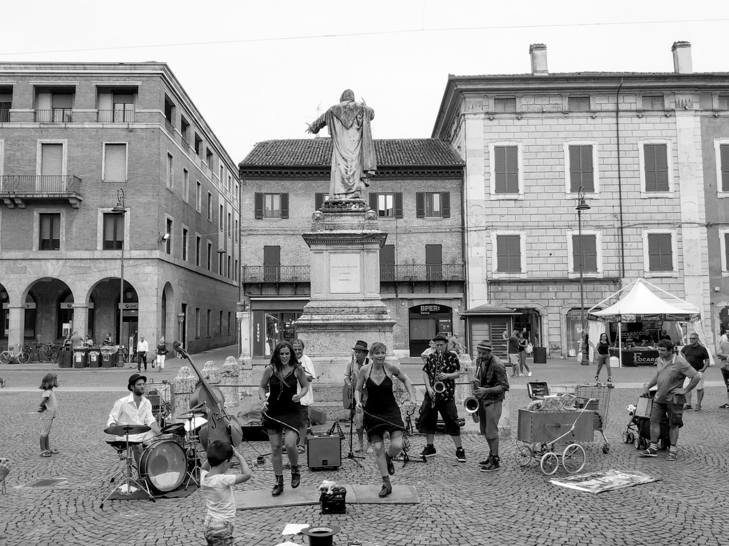 Ma quel pubblico applaude, ride, tiene il tempo, passeggia, vive. E ti dicevo, in questa epoca è importante semplicemente che tu esista, per quanto imperfetto e per noi di Ferrara, magari, scontato. Non siamo più abituati alla leggerezza, ad abbracciare suoni e costumi diversi.