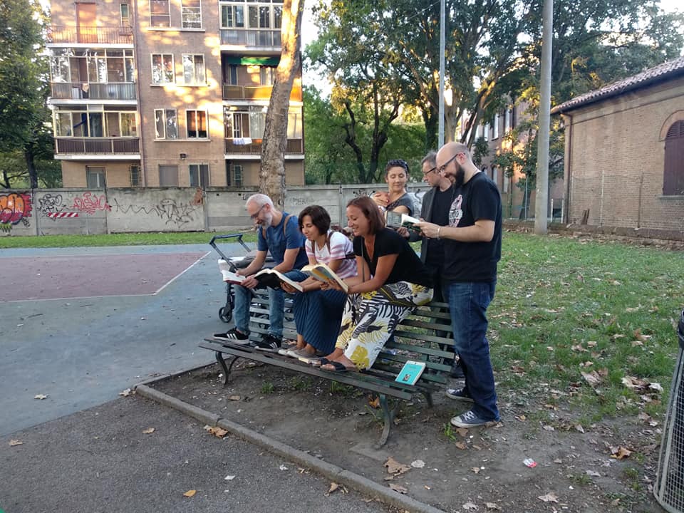 A quel progetto ne seguirono molti altri: il Ventennale della libreria Feltrinelli, Punto e Virgola, Movida On. Il 2016 fu l’anno dell’Orlando Furioso, animato da Per conto di Ariosto e Ariosto Pop, che vide la partecipazione di uno dei miei scrittori preferiti, Stefano Benni. In tutto questo tempo siamo cambiati sia come individui sia come gruppo: alcuni sono arrivati e altri hanno scelto di proseguire per un’altra strada, ma siamo sempre riusciti a rimanere una presenza costante sul territorio, proponendo di anno in anno iniziative diverse. Le difficoltà ci sono state e ci sono ancora: l’impegno di volontariato non è semplice e non è per tutti. Prendersi cura delle persone, prima che delle cose, è un’occupazione seria: richiede continuità, creatività, determinazione e passione (e anche una gran dose di pazienza).