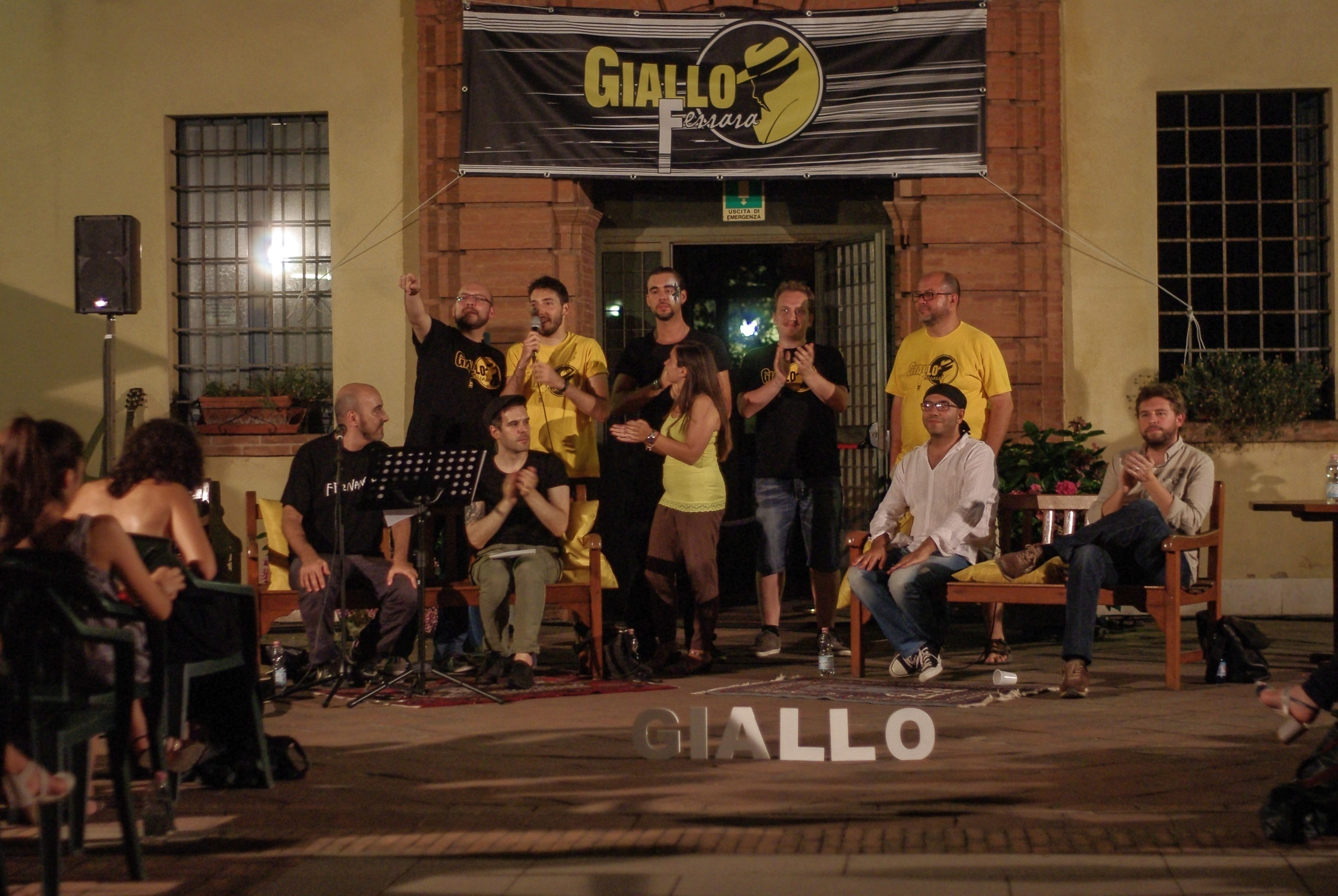 Come in ogni storia d’amore che si rispetti, non scorderò mai il mio primo appuntamento con l’associazione: era un tardo pomeriggio di metà aprile, l’incontro era al pub Main Street. Scesi timorosa nel seminterrato del locale, dove mi aspettavano Riccardo Corazza e Matteo Bianchi, due perfetti sconosciuti il cui nome era per me soltanto una misteriosa firma in neretto sulle pagine dei quotidiani locali. Fu un’emozione scoprire davanti a una birra, tra parole accorate, pensieri profondi e battute di spirito qualcosa che avrebbe segnato profondamente il mio concetto di cultura: la letteratura può – e deve – essere divertente. Un piccolo festival, una due giorni di racconti thriller e noir che si stava organizzando per quell’estate: così mi fu presentata la Rassegna GialloFerrara, che per i tre anni successivi avrebbe tinto di giallo il centro storico, promuovendo la letteratura “di genere” fuori e dentro i confini delle mura estensi.