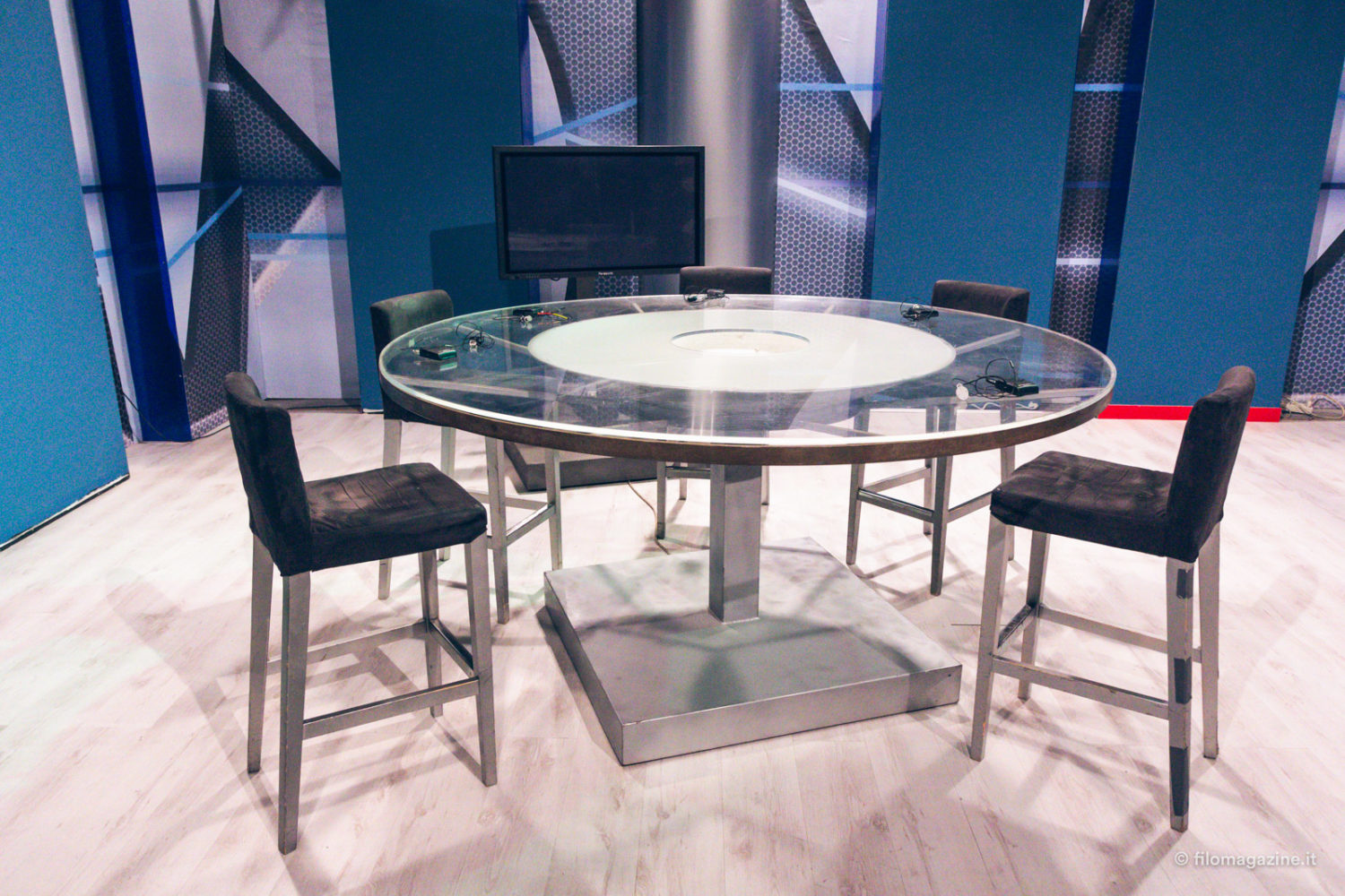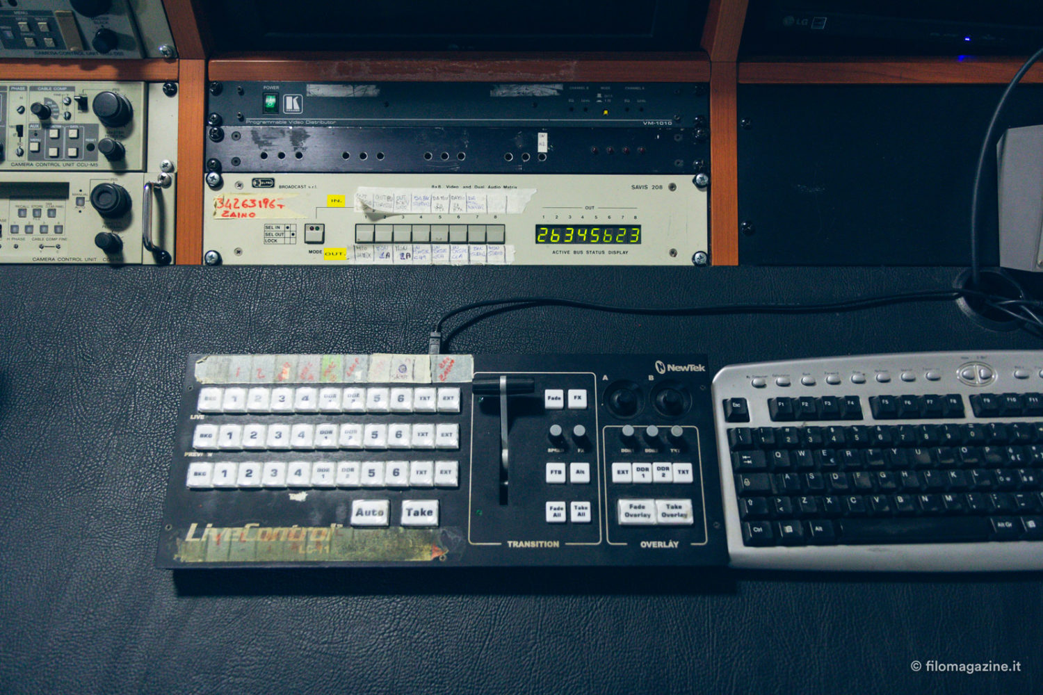 Costruire format televisivi impone di avere buone idee ma anche infrastrutture adeguate: girando per gli uffici e gli studi di registrazione colpisce la differenza tra spazi percepiti e spazi reali. Sembrano quasi prototipi in scala: osserviamo il luogo dove viene messo in onda il telegiornale e lo spazio che diventa studio per le trasmissioni in diretta o registrate, con pannelli che ne possono variare colori e sfondi. Senza riflettori accesi e persone presenti perdono molto del loro fascino, un po’ come salire sul palco a teatro prima o dopo lo spettacolo, percependo dimensioni, visuali e trucchi di scena. Le imponenti camere di controllo della regia e della programmazione dell’intero palinsesto occupano intere cabine con banchi immensi pieni di interruttori e controlli di ogni tipo. Dai tanti monitor accesi si vede cosa sta andando in onda e la scaletta degli spazi pubblicitari inseriti, una macchina automatizzata e al contempo umana, che vive durante le giornate in modo non sempre prevedibile.