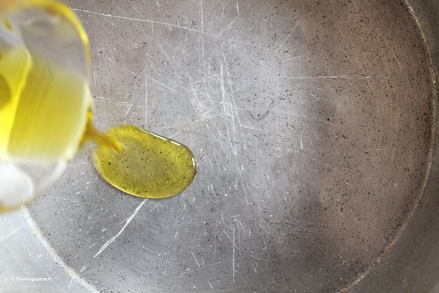 5. Ungere con uno strato abbondante di olio una teglia circolare di 25 cm di diametro.