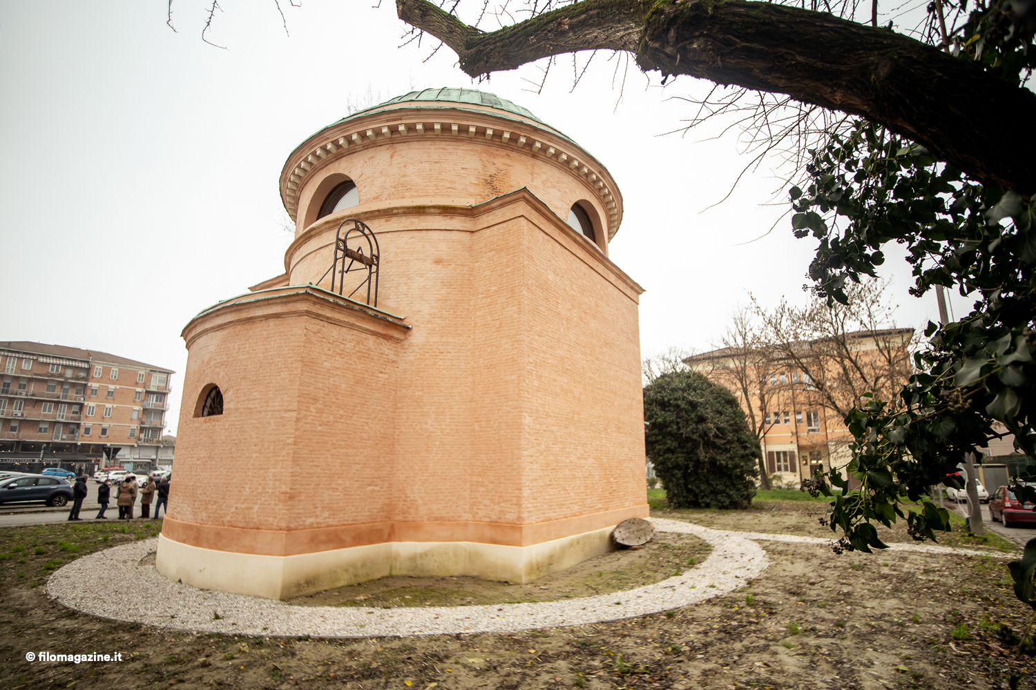A lungo abbandonata nel piazzale-parcheggio di via Bologna, all’incrocio con via Recchi, da oggi la Cappella Revedin torna restaurata al suo aspetto originario. L’intervento appena concluso permette così all’oratorio ottocentesco di recuperare negli interni e all’esterno il suo aspetto originale. I lavori erano iniziati durante la precedente amministrazione comunale, nel maggio 2019, come opere di ripristino post sisma di beni culturali, cofinanziate dalla Regione Emilia Romagna, che ha contribuito, in questo caso, con una somma di oltre 278mila euro, cui si sono aggiunte risorse comunali per 143mila euro.
