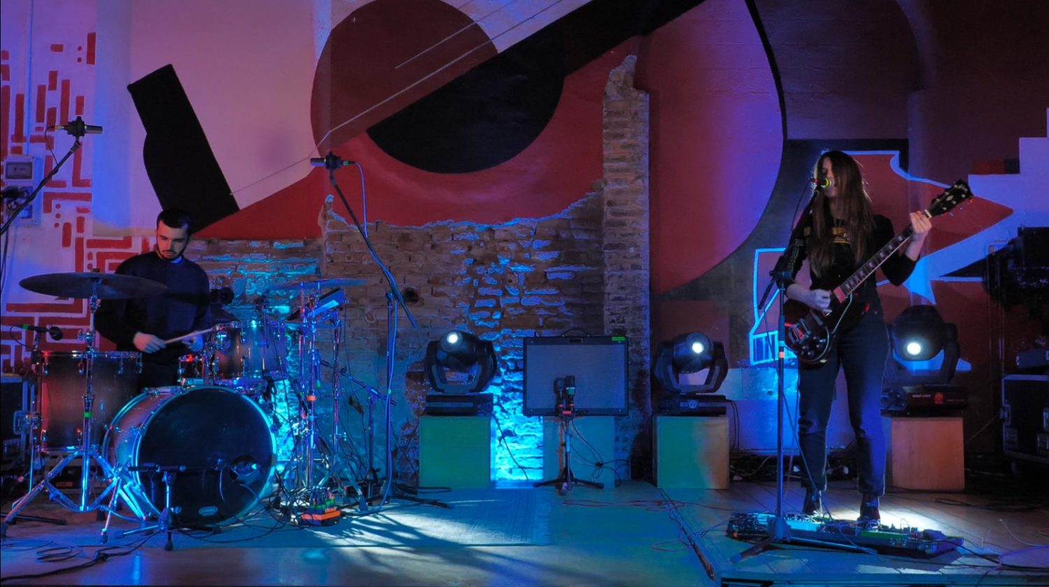 Un palco illuminato, le casse ad alto volume, persone dietro un mixer, energia trasmessa sotto forma di onde sonore per poche, sparute persone (i tecnici alle prese con la registrazione) che, pure, sono qui, ora e assieme, collettivamente in un noi che è estemporaneo, eppure esiste.
