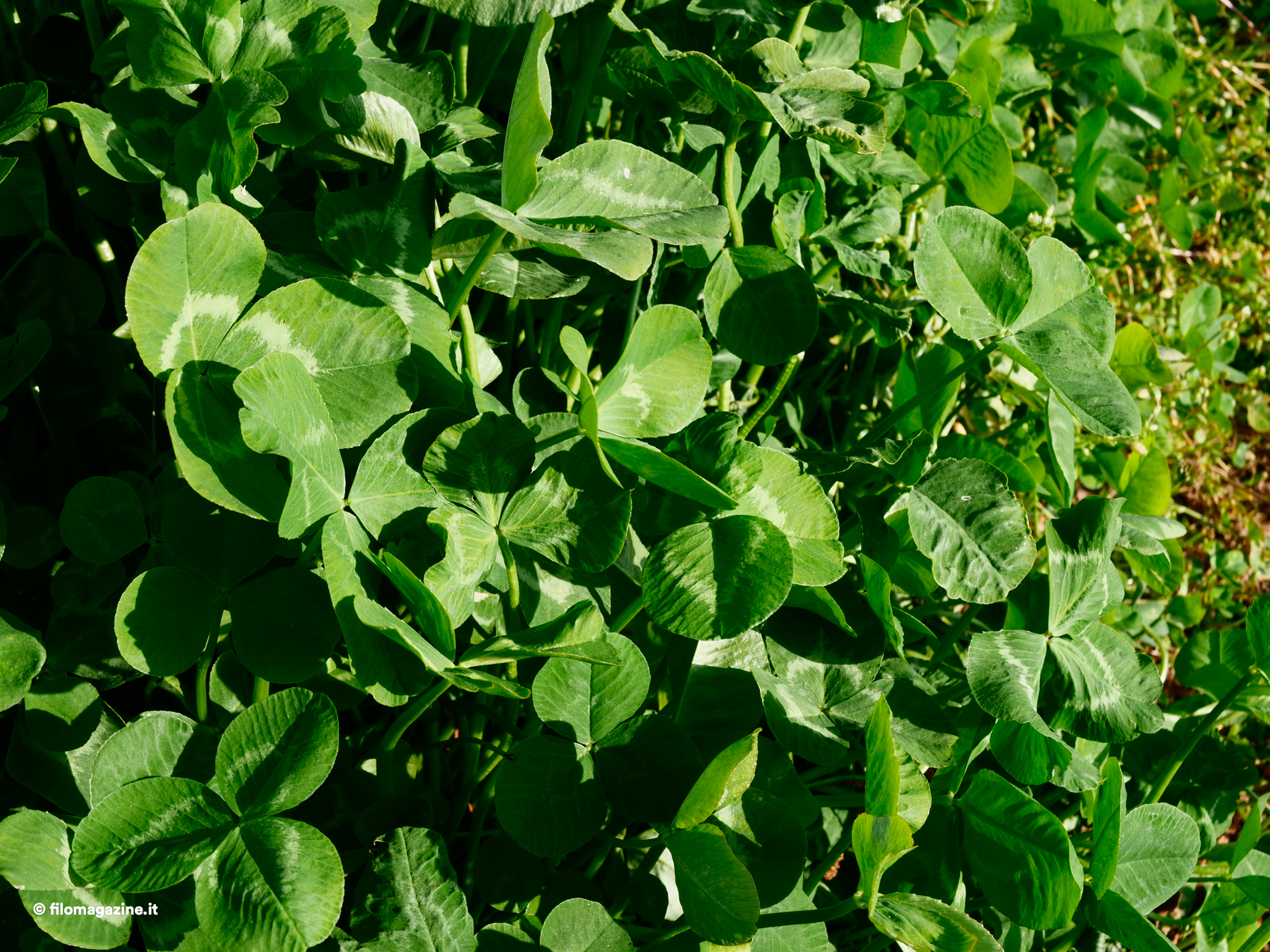 Tutto il campo adibito a bambù è stato seminato pure con trifoglio nano. Al di là della bellezza estetica, simile ad un prato all’inglese, il trifoglio si dimostra un ottimo pacciamante, utile a trattenere l’umidità del suolo ed evitare la proliferazione di infestanti, risulta inoltre un’erba ideale per le consociazioni, aiutando a veicolare i nutrienti e stimolare la crescita delle piante.