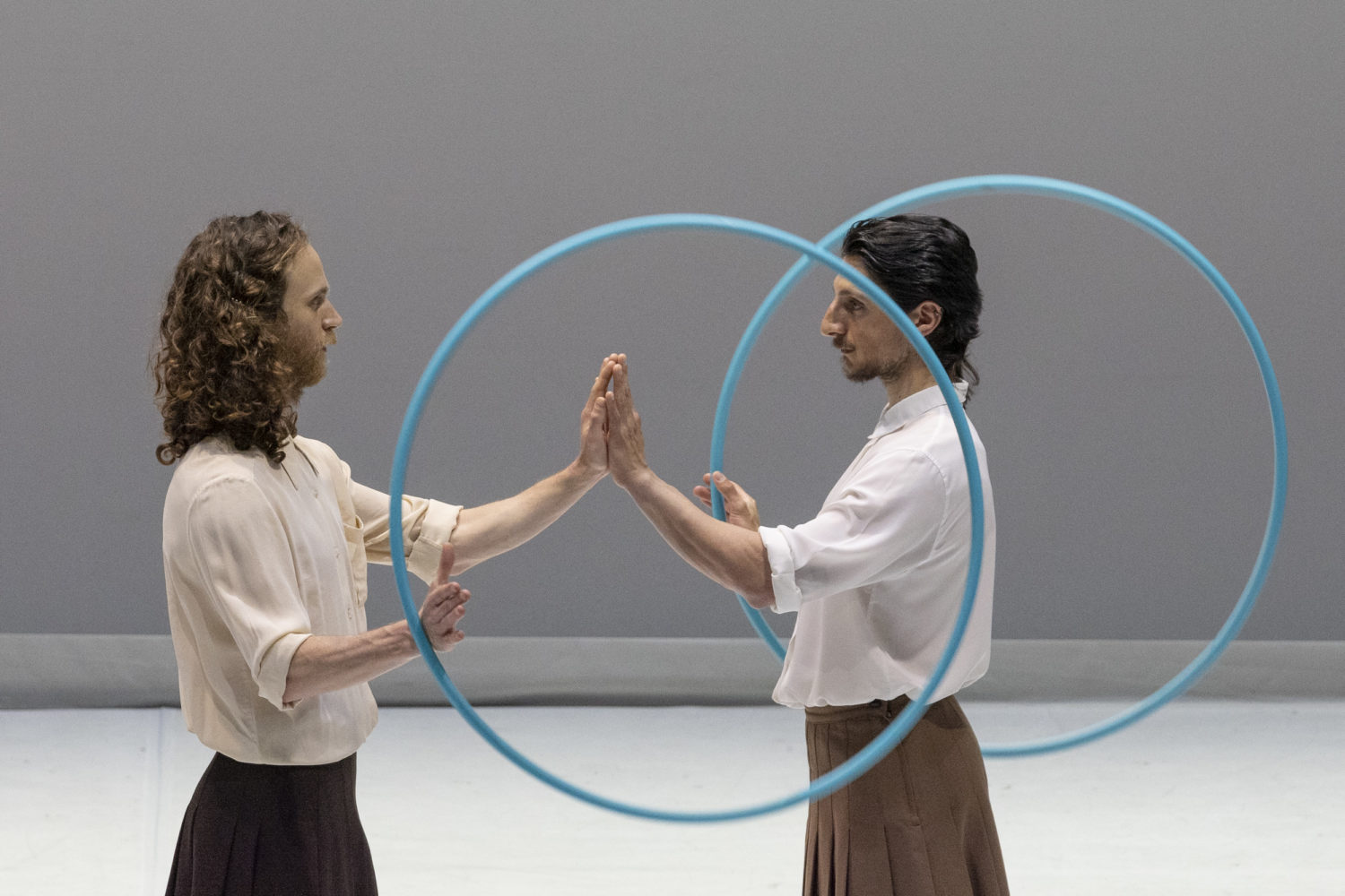 Il pubblico, in religioso silenzio, osserva. Osserva movimenti dei danzatori e quelli degli hula hoop, osserva i cerchi e le ellissi disegnate con maestria. Seduti, distanziati e con mascherina osservano movimenti ripetuti e leggeri. “C’è sempre – dice Sciarroni – qualcosa di leggero e misterioso nell’ostinazione della ripetizione, qualcosa che sembra avere un’energia opposta rispetto alla pazienza, alla fatica, e all’ostinazione dell’azione che stanno compiendo”.