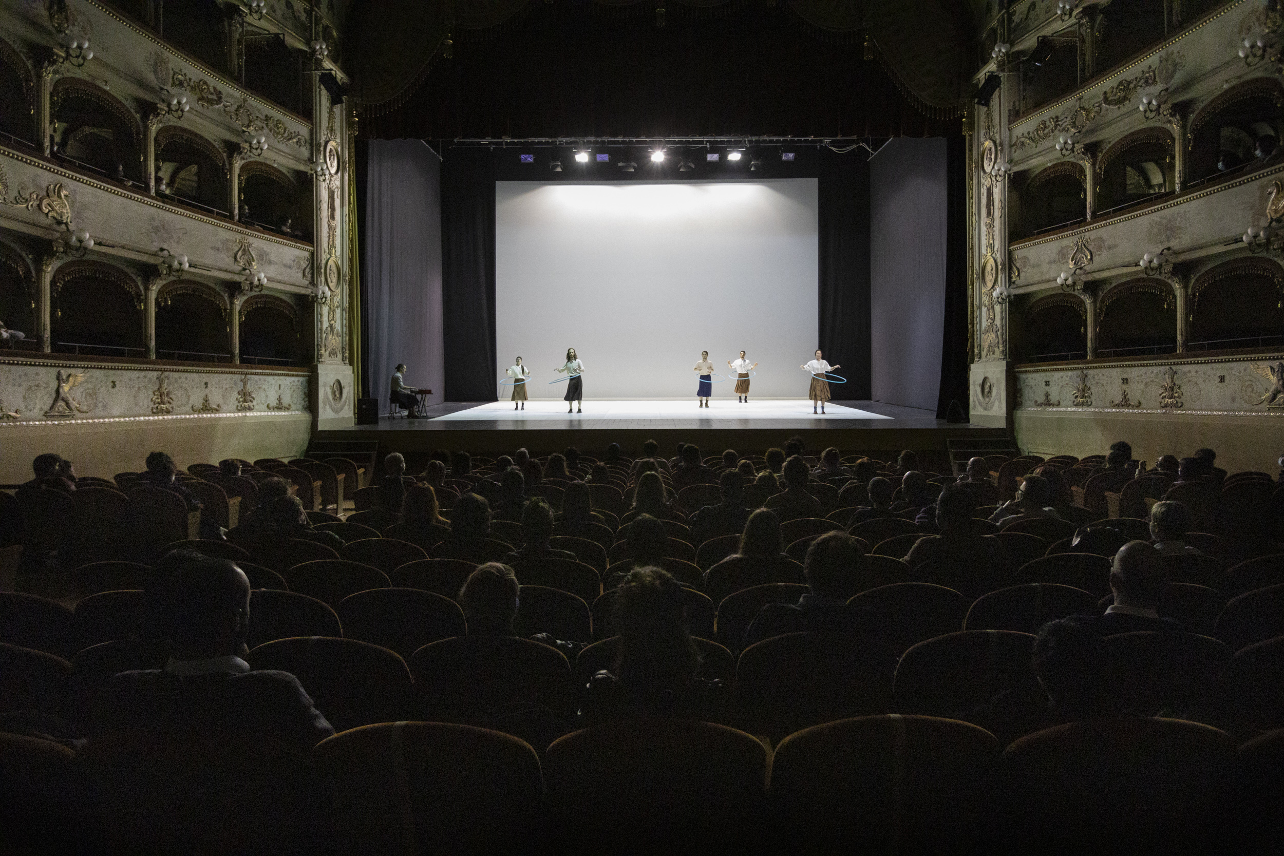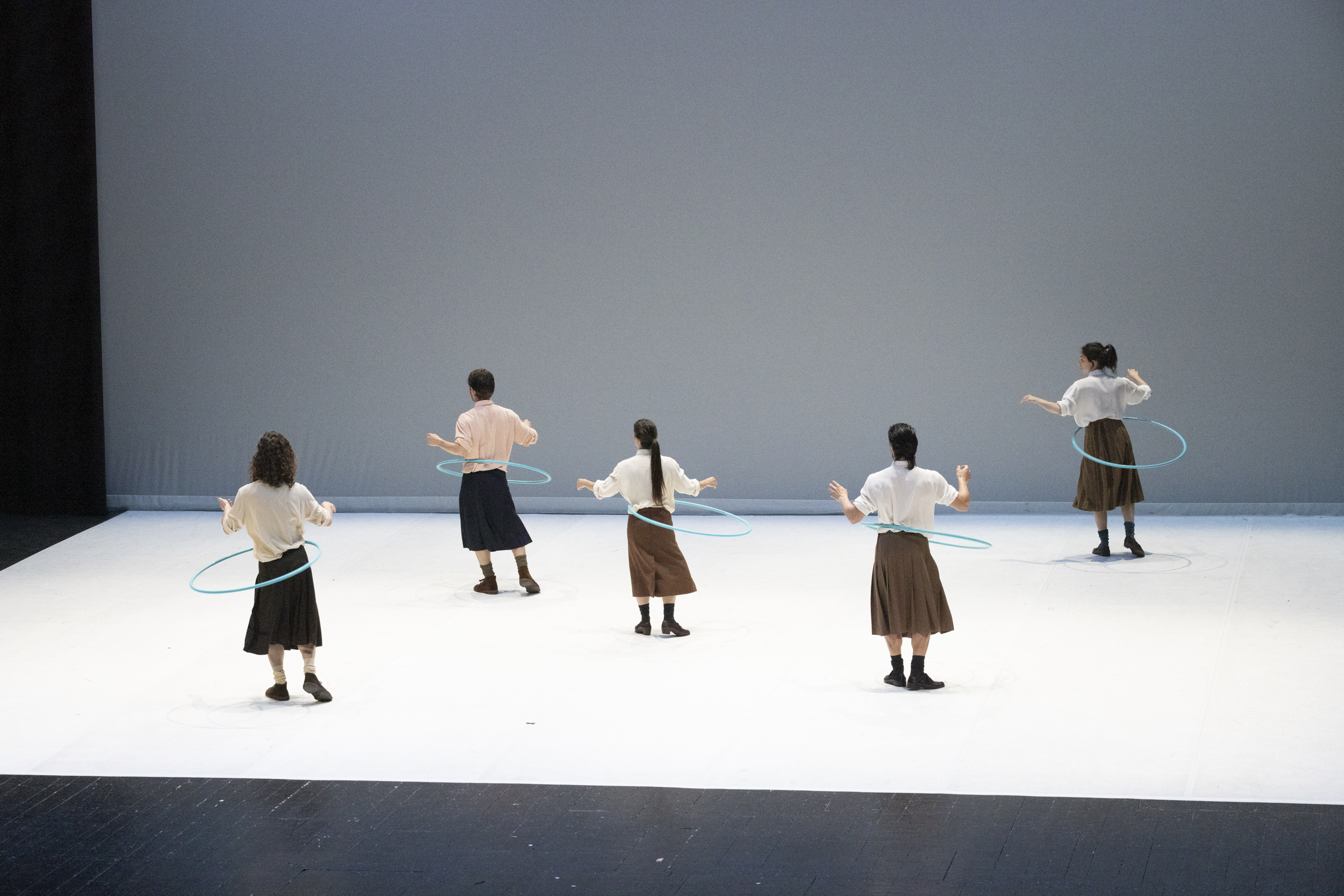 Il pubblico, in religioso silenzio, osserva. Osserva movimenti dei danzatori e quelli degli hula hoop, osserva i cerchi e le ellissi disegnate con maestria. Seduti, distanziati e con mascherina osservano movimenti ripetuti e leggeri. “C’è sempre – dice Sciarroni – qualcosa di leggero e misterioso nell’ostinazione della ripetizione, qualcosa che sembra avere un’energia opposta rispetto alla pazienza, alla fatica, e all’ostinazione dell’azione che stanno compiendo”.