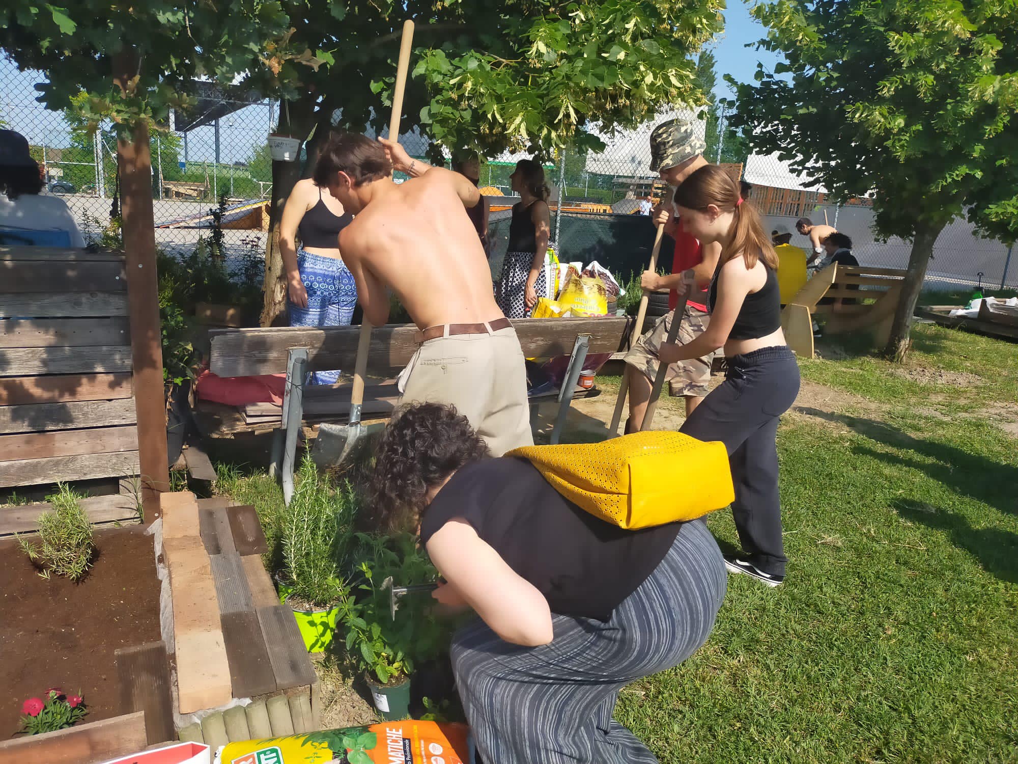 Nonostante il gran caldo, la partecipazione è stata ottima, almeno una sessantina di persone erano presenti alla prima giornata di giovedì e tanti altri hanno continuato con le piantumazioni durante il fine settimana. Tra i presenti c’erano anche i giovani e giovanissimi della scuola di skateboarding, il corso settimanale organizzato dai volontari del park, accompagnati dai loro genitori, ognuno con relativa piantina da mettere a dimora. Alla fine del week end, oltre 100 piante aromatiche autoctone sono state accuratamente sistemate per migliorare l’aspetto dell’area relax, negli anni già allestita dagli sportivi con bancali e cassapanche, ma che adesso ha acquisito un nuovo aspetto, più naturale, stimolante, e ricco di biodiversità.