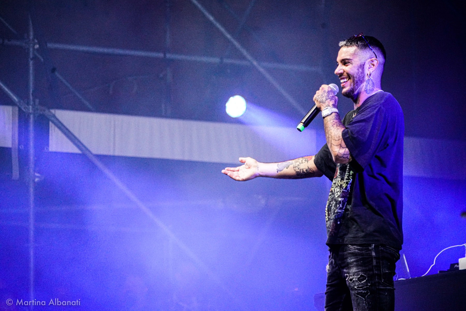 Tarantolato, si toglie la maglia e le urla già impazzano… eccola Cracovia, rap a velocità supersonica. Poi scende dal palco: ‘se Maometto non va dalla montagna, la montagna va da Maometto’ ma ‘non alzatevi sennò mi fate incazzare’. Sopra ogni limite. Così come nel testo di Te lo prometto, con cui conclude per il gran finale, anzi no: vuole il video con i flash di tutta la piazza come ci fosse una canzone triste, ma di sue non ne ha e allora improvvisa ‘I bambini fanno oh’.
