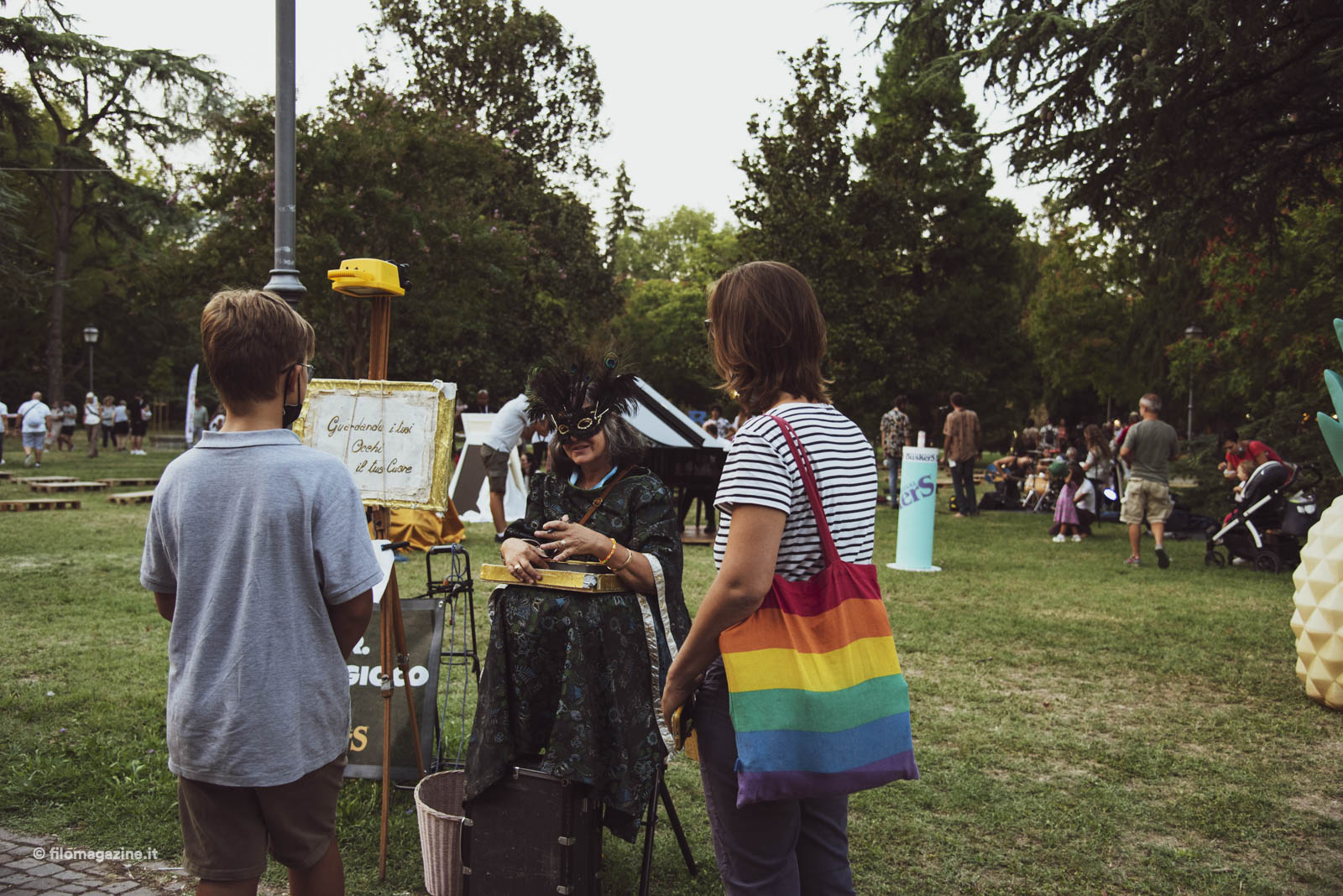 Loro e tanti altri ci hanno accompagnato per gli angoli del Parco Massari, a volte soli, a volte in compagnia, lasciandosi ammirare in una cornice quasi fiabesca. Un mondo incantato in cui l’arte, dopo le enormi difficoltà dell’ultimo anno, torna a essere protagonista. Le persone presenti ne sono state il maggior testimone, tante ma sempre in sicurezza, hanno applaudito, cantato e, in alcuni casi, accennato un ballo. Seppur con alcune differenze è stato un ritorno al passato. Il Festival è incontro, scoperta o anche riscoperta. Incontro di arte, di culture ma anche incontri con persone nuove o con persone che non si vedeva da tempo. È scoperta o riscoperta di nuove forme di arte, di nuovi gruppi ma anche di grandi classici che funzionano sempre (o quasi).
