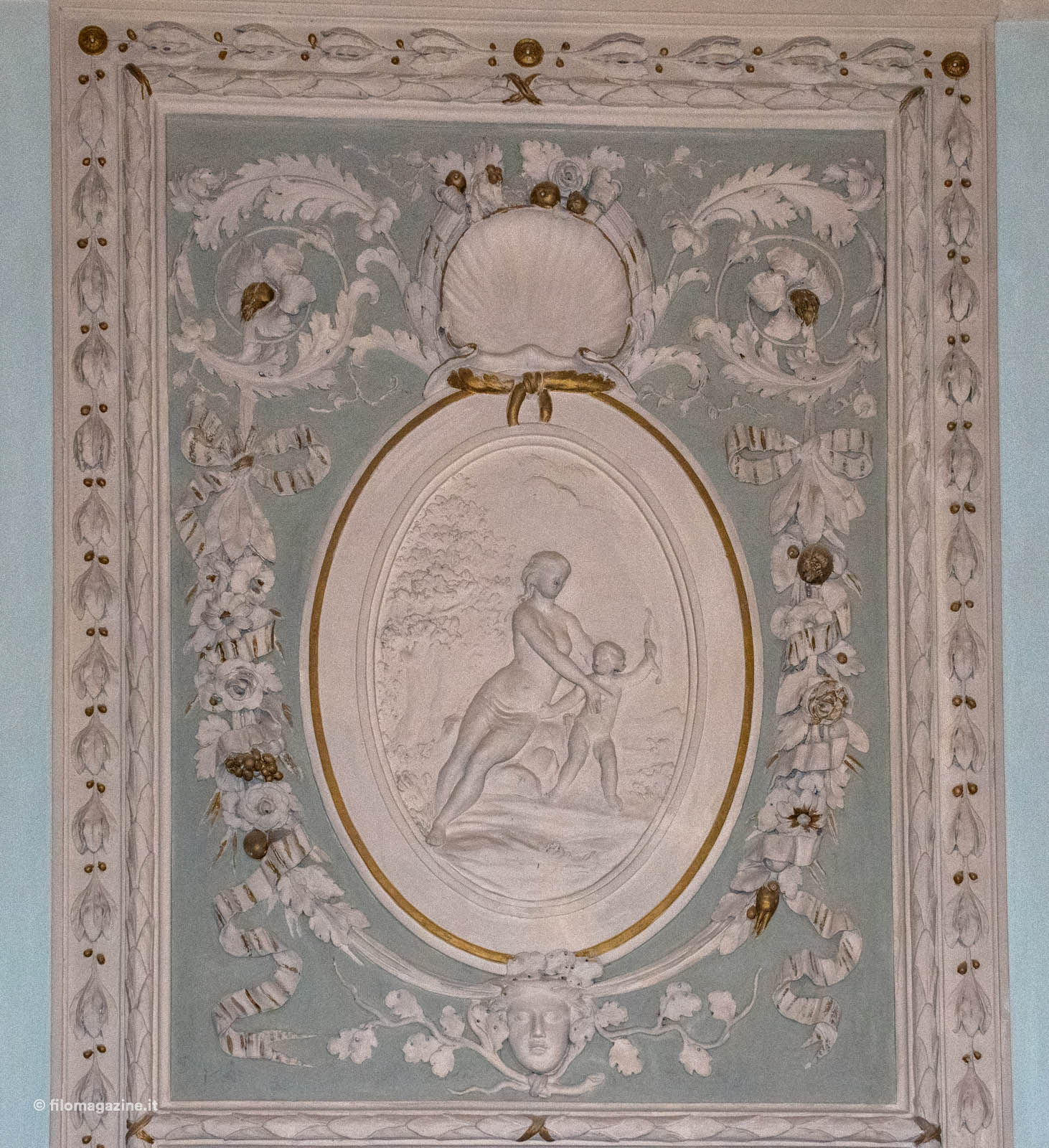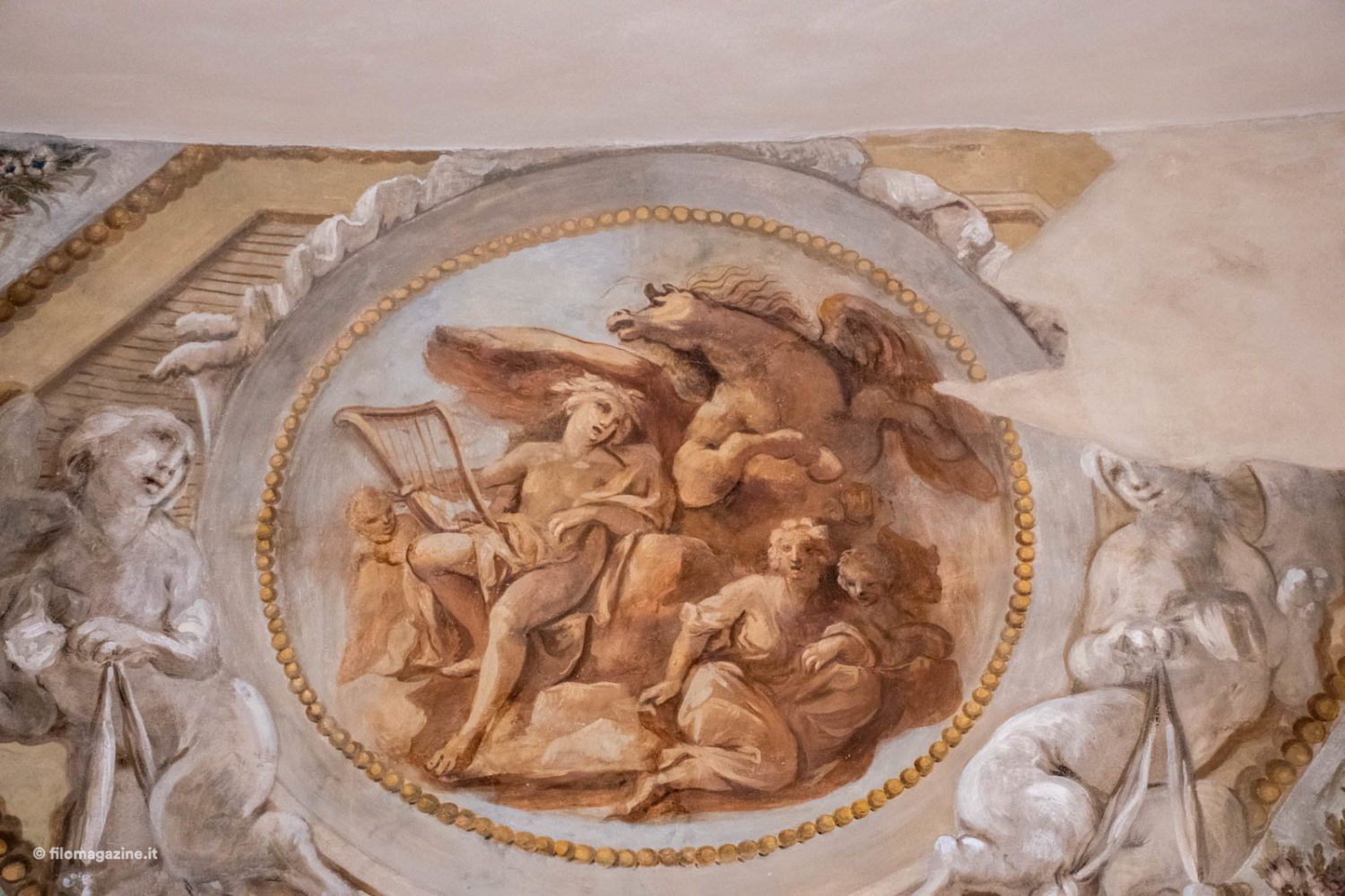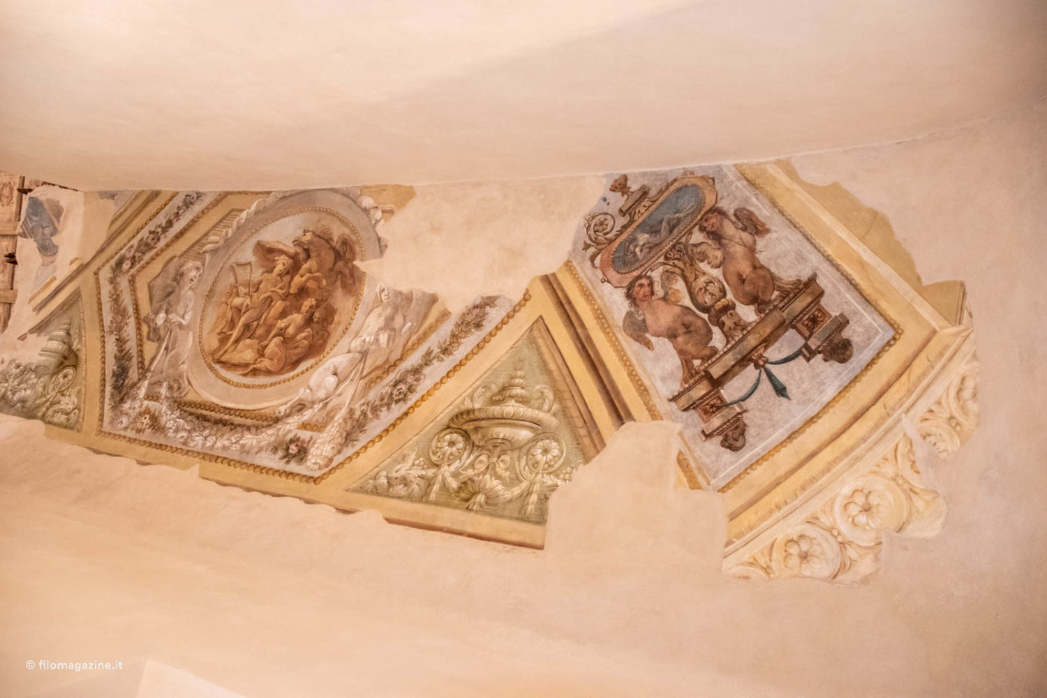 Nell’atrio d’ingresso di Palazzo Naselli-Crispi, nel bellissimo androne voltato a botte, si conserva ancora oggi l’unico affresco originario cinquecentesco, un tondo affrescato raffigurante una Madonna con bambino. L’affresco è di Girolamo da Carpi ed è stato eseguito con modi che risentono fortemente dell’influenza di Correggio, uno dei suoi riferimenti prediletti degli anni giovanili trascorsi a Bologna.