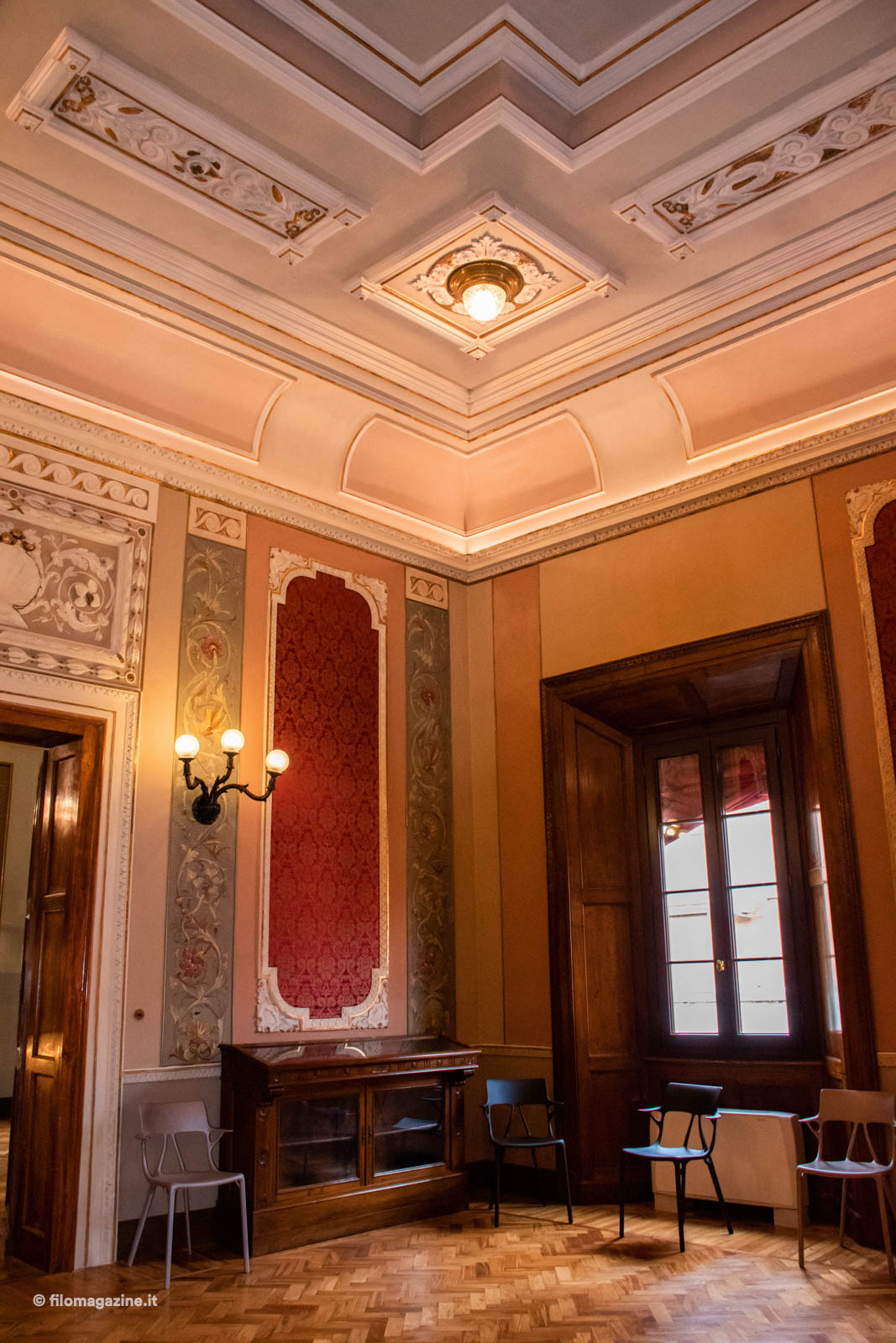 La torretta, il cui volume emerge dal primo piano del corpo di fabbrica per un’altezza di circa 12 metri su quattro piani, ha una tradizionale struttura in muratura di mattoni. Il tetto è a quattro falde, alla sommità del quale si attesta una lanterna-abbaino che consente l’uscita all’esterno, e presenta due capriate con orditura di travi lignee, travetti, tavolato di legno. Se non temete le vertigini, la vista dalla torretta è davvero imperdibile.