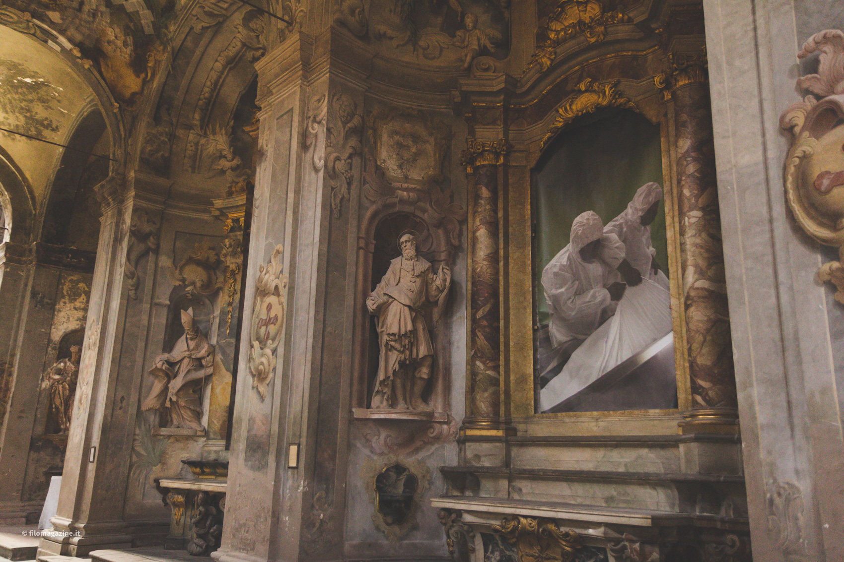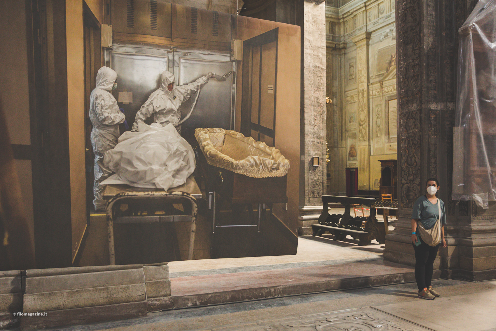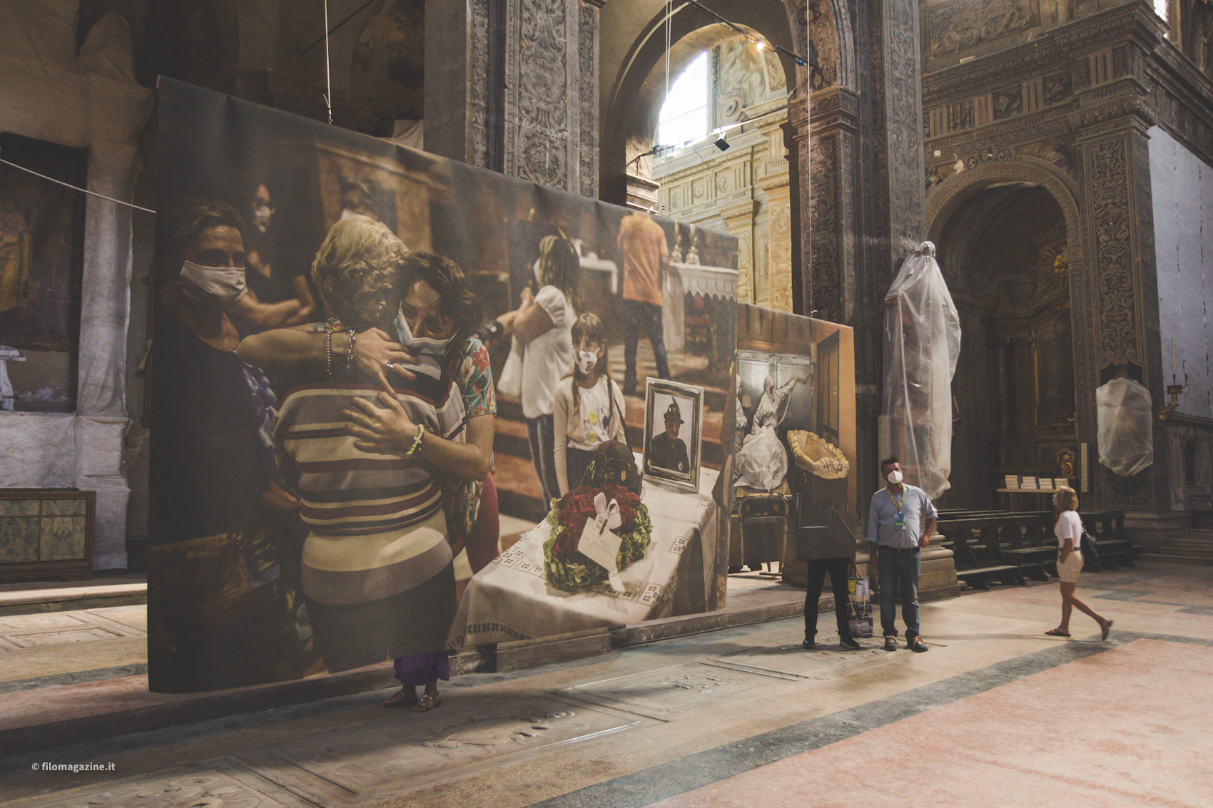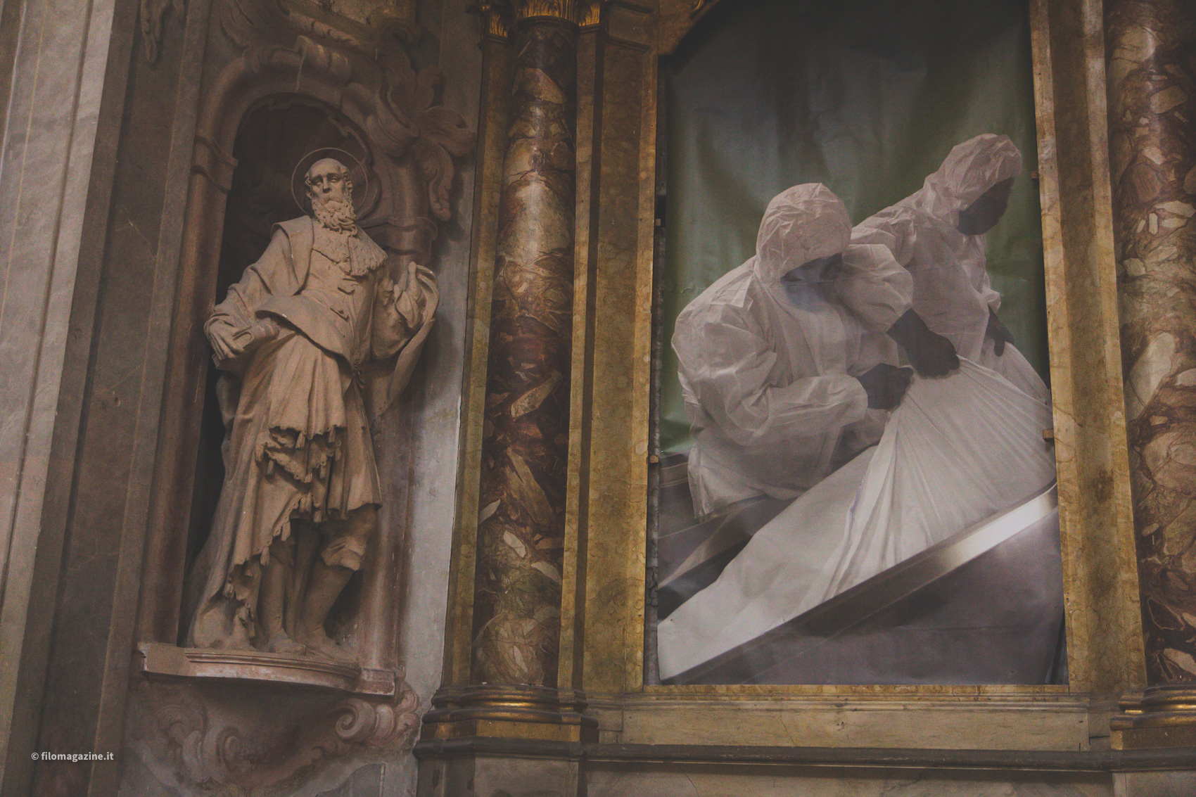 Last but not least, il mio viaggio finisce nella straordinaria Chiesa di San Paolo, con la mostra più toccante che ricordi: When everything changed Covid-19: the European epicenter di Fabio Bucciarelli. Le immagini di quel marzo 2020 in cui Bergamo era la città più colpita dal Covid nella regione italiana più in difficoltà, immagini che mostrano persone che non sono più persone, attaccate a ventilatori e ossigeno, immagini che mostrano bare e persone sconvolte dal dolore. Immagini che hanno riempito i giornali e forse avrete già visto in tv, che fanno piangere e che mi hanno fatto piangere, in contrasto con la sacralità di un luogo raccolto, sfarzoso e silenzioso come San Paolo. D’altronde non sempre si possono raccontare storie belle, giusto? Questa poi è una storia ancora fresca che in parte stiamo ancora vivendo.