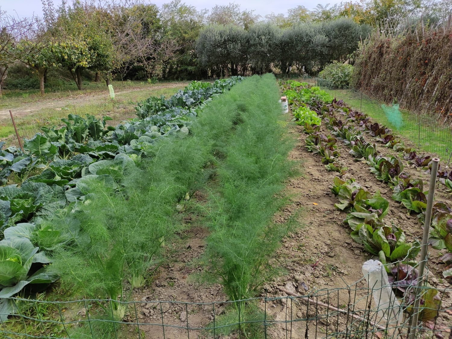 La villa è circondata da bellezze naturali che vengono curate da anni da Maurizio Maini, anni 75, che si aggira per il giardino mentre parliamo, controllando silenziosamente piante, giardini, l’orto invernale in divenire, tutti i giorni, senza pause.