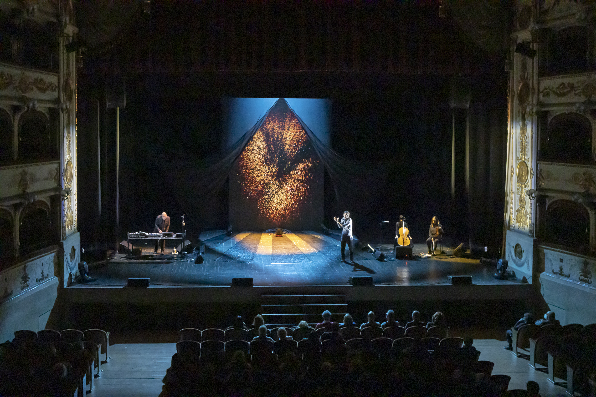 Germano e Teardo hanno parlato al nostro cuore con parole antiche, ma in modo tanto comprensibile e contemporaneo da saper rendere conseguente ogni verso al gracchiare del basso. Gli archi con le parole, le luci con i tappeti sonori. Un intreccio naturale fuori dal tempo e dallo spazio.