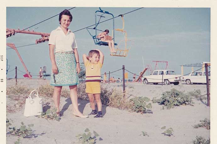 Silvana ha frequentato anche lei il campeggio assieme ai figli piccoli e ricorda molto bene la seggiovia, mi confessa di essersi innamorata di Lido Spina proprio in quegli anni di boom per i lidi comacchiesi, mentre la Signora Aurelia di Scandiano mi manda una foto con un uomo e un bimbo sorridenti, ripresi dai posti davanti, intenti a tornare al campeggio (si vede il mare e la spiaggia alle loro spalle), aggiungendo che “Era bellissimo, purtroppo da questa foto sono passati quasi 50 anni. La spiaggia era grande, il divertimento in campeggio non mancava mai!”.