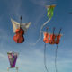 E i nostri modelli migliori… Beh, senza dubbio gli aquiloni-orchestra: a fine anni ’80 ci hanno resi famosi in ambito aquilonistico. Era una cosa diversa per quegli anni, un vero spettacolo, una performance con ogni aquilonista che aveva il suo strumento, si veniva a creare una situazione teatrale. Un altro esempio è il disco volante che nominavo prima: la nostra mascotte, a cui basta pure pochissimo vento nonostante le sue enormi dimensioni.