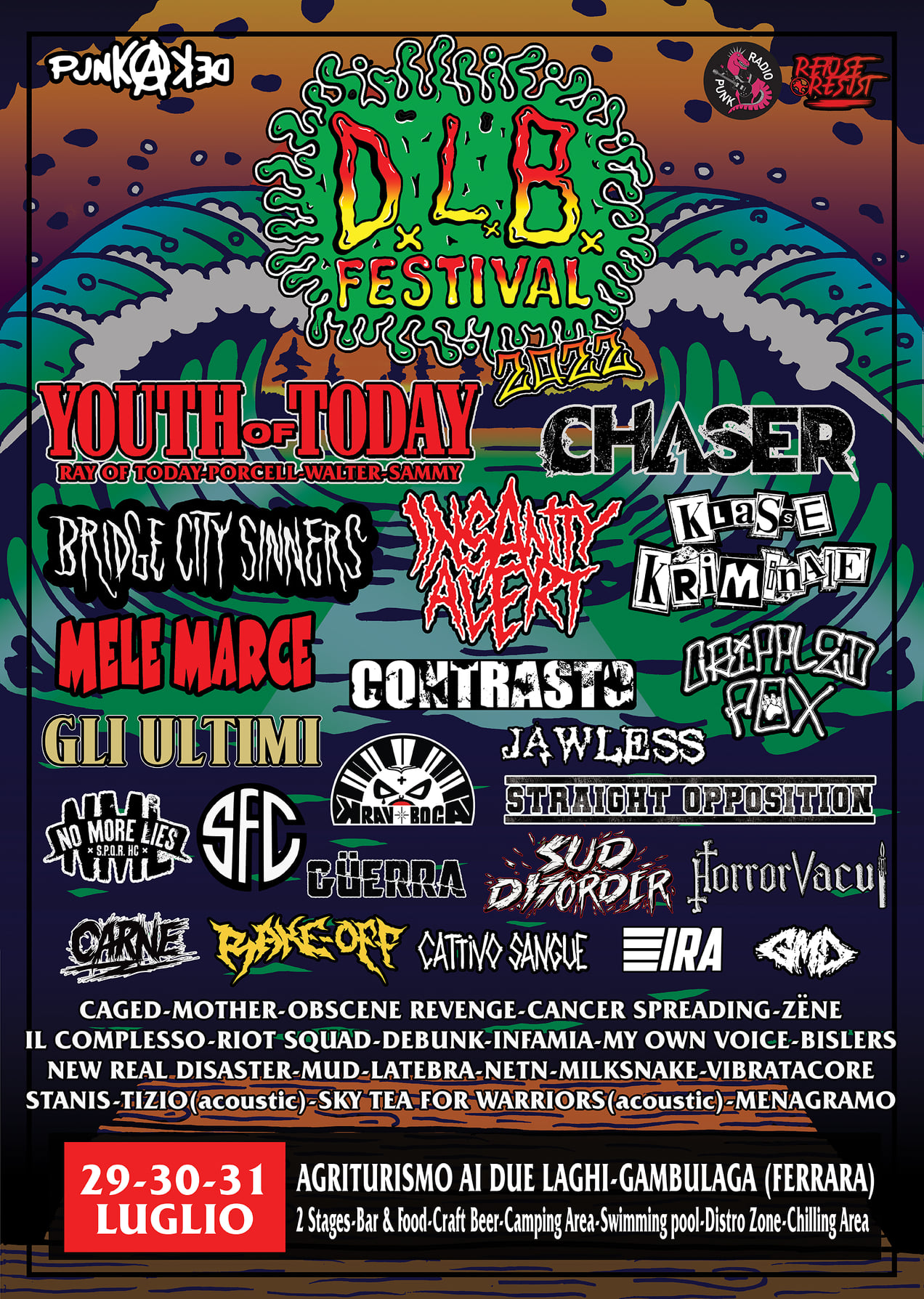 Dal 29 al 31 Luglio Distruggi la Bassa Festival. Nella location dell'agriturismo I due Laghi di Gambulaga: è un festival che anno dopo anno si amplia e sta diventando un piccolo culto all'interno del mondo punk, in particolare guardando al mondo indipendente. Punk, street punk, country punk, hardcore: una tre giorni nella natura per chi vuole pogare, saltare, sudare e sentire chitarre, chitarre e chitarre.