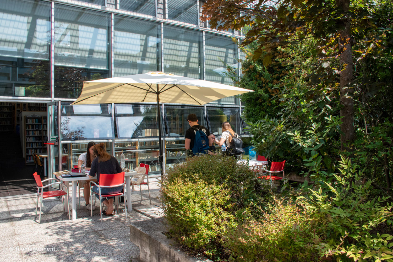 Passeggiandoci si notano le enormi possibilità che consente questo tipo di edificio: dalla sala con quotidiani e riviste (l’emeroteca) al giardino interno, dagli spazi espositivi alla sala multimediale e quella ragazzi, fino al giardino esterno, il tutto in una progettazione accessibile a chiunque, anche a chi avesse difficoltà di movimento, perché pensata su un unico piano.