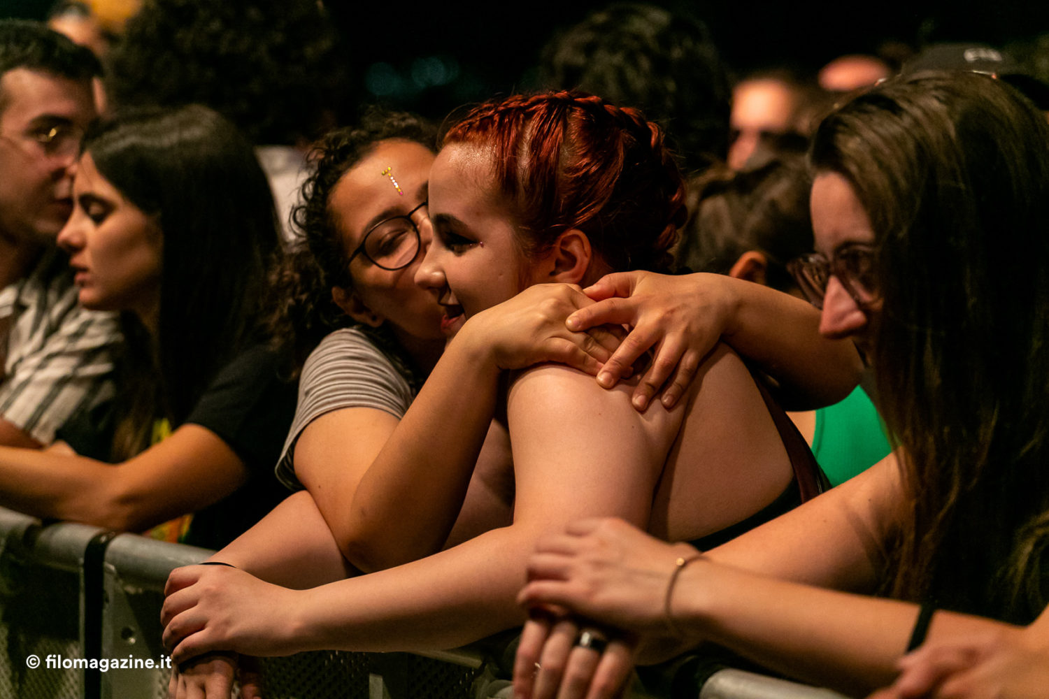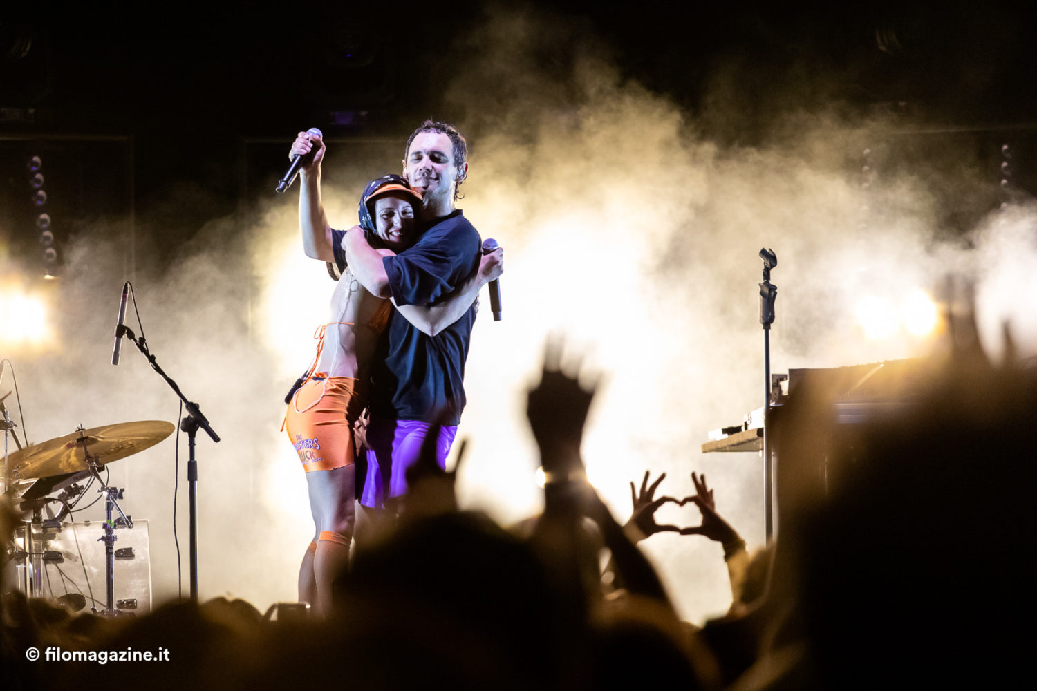 Dove, pur senza enormi sussulti emotivi, può capitare di vedere volare verso il pubblico cartoni di pizza che si aprono (sarà per via del verso di uno dei suoi pezzi: festival, polizia, pizzeria) , di osservare la scomparsa di magliette e canottiere dal palco che lasciano spazio alla pelle nuda, di leggere sulle labbra del pubblico rapito inni essenziali quanto riusciti (la verità è che ci piace stare bene / la verità è che ci piace stare insieme / così). Soprattutto, muovendosi a lato, dentro, a fianco, lontano dal pubblico, appare chiara la connessione centrale tra artista e pubblico verso un preciso scopo: la voglia di celebrare la gioia.