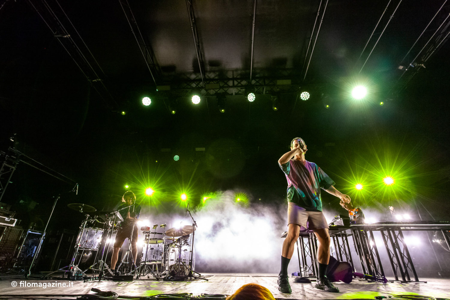Che poi, volendo Cosmo avrebbe la penna per scrivere piccole hit di qualità superiore a certa mediocrità pop da classifica italiana, solo che questo rimane un pò nascosto durante il concerto, ma forse è chi scrive, a bramare emozioni più intense e durature, slegate dalla sola ritmica. Quello che conta è il linguaggio di Cosmo e del suo popolo, quello di Animali, un inno al dissolvere la propria rete di protezione dal giudizio altrui. Quello dell’inno all’amore: “ho voglia di ballare, ho voglia di capire / a che punto questo corpo può arrivare / fino a quando riusciremo a non dormire, a non morire” e funziona per centinaia, forse un migliaio di persone.