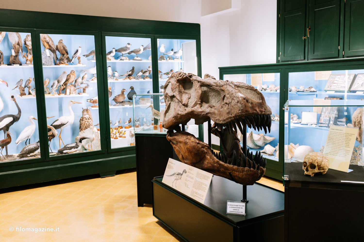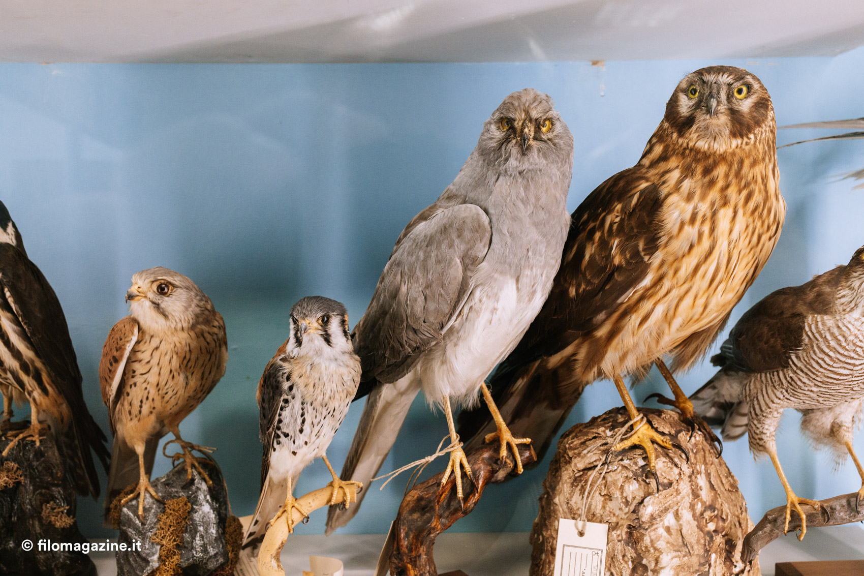 A volte riceviamo donazioni, magari perché qualcuno aveva il nonno o il papà appassionato. Spesso recuperiamo animali da diversi enti in giro per l’Italia. Sono animali selvatici che vengono trovati morti sulle strade, ma sono interessantissimi per lo studio, così li salviamo dall’inceneritore. Oppure sono gli stessi istituti zoologici a contattarci quando gli animali muoiono: li mantengono dentro a grossi freezer, (qui a Ferrara abbiamo ad esempio una tigre), poi li cedono ai musei. Qualche mese fa siamo andati in Puglia a recuperare un gruppo di lontre ritrovate sulla strada… Dopodiché portiamo gli animali dal nostro tassidermista di fiducia a Udine, bravissimo anche se ormai purtroppo anziano. La sua è una professione che sta morendo in Italia, all’estero invece è un po’ più sentita, soprattutto dal punto di vista artistico.