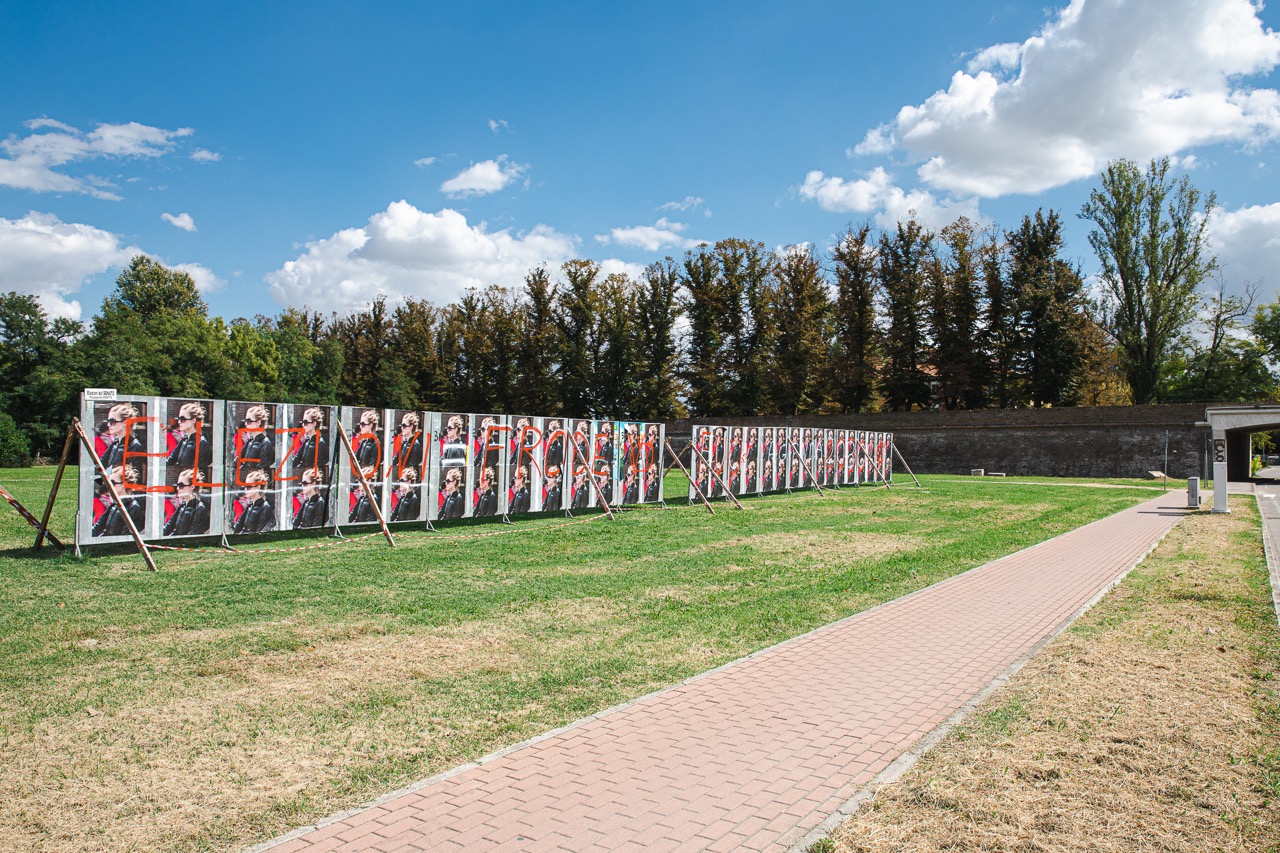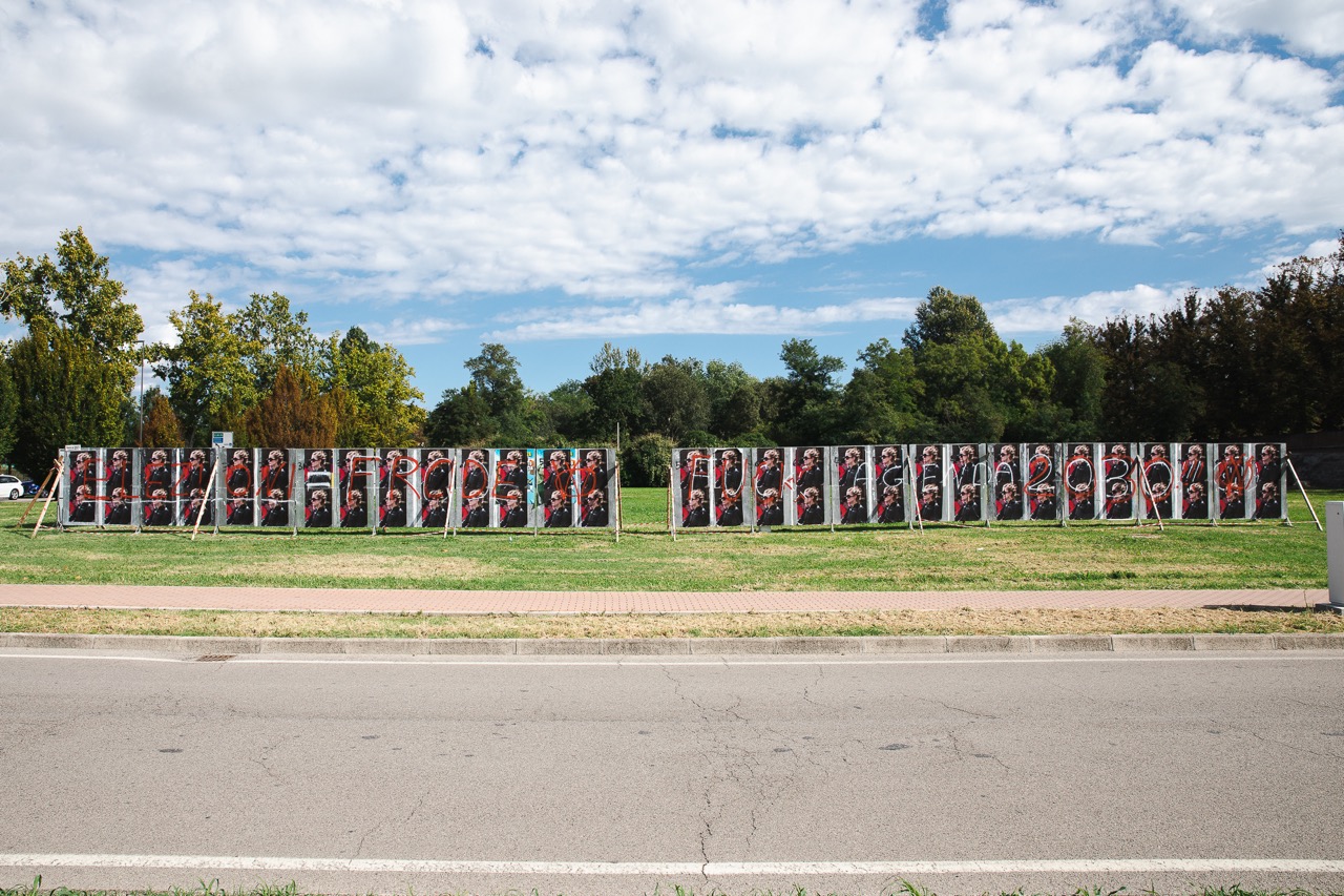 Ma a guardarci meglio quello che si osserva sembra essere il risultato di due (o più) operazioni diverse. Una prima fase, l’affissione delle immagini e in un secondo momento, quasi con un gesto iconoclasta, l’aggiunta delle scritte. In un primo istante consideravo la prima parte dell’intervento debole e poco funzionale, trovando nell’aggiunta della scritta l’elemento forte e provocatorio, per quanto discutibile nei contenuti.