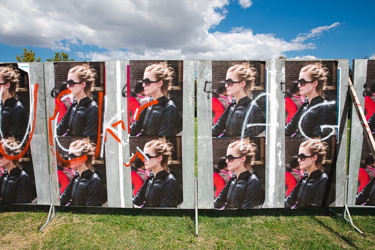 Un paio di giorni fa mi trovavo nel sotto mura nelle prossimità del Giardino delle Capinere di LIPU (nei pressi della rotonda di Palazzo delle Palestre, per intenderci) e ho notato una serie di manifesti che rappresentavano la stessa identica immagine in doppia fila, ossia il profilo di una ragazza, con indosso occhiali da sole.