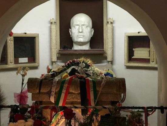 La tomba del leader del Partito Socialista Unionista “è sopra la terra e c’è questa cappella bianca con sopra il nome e una bandiera tricolore. Al contrario la tomba di Mussolini è sotto terra” e mentre la prima è luminosa in quella del dittatore “vai in un luogo più scuro”, un luogo che “fa molta impressione e nel quale senti qualcosa che aleggia di ancora non risolto nel nostro paese”. “Probabilmente – aggiunge – i conti con quella storia lì non sono ancora stati fatti fino in fondo e credo ci vorrà ancora tempo prima di riuscire a farli”.