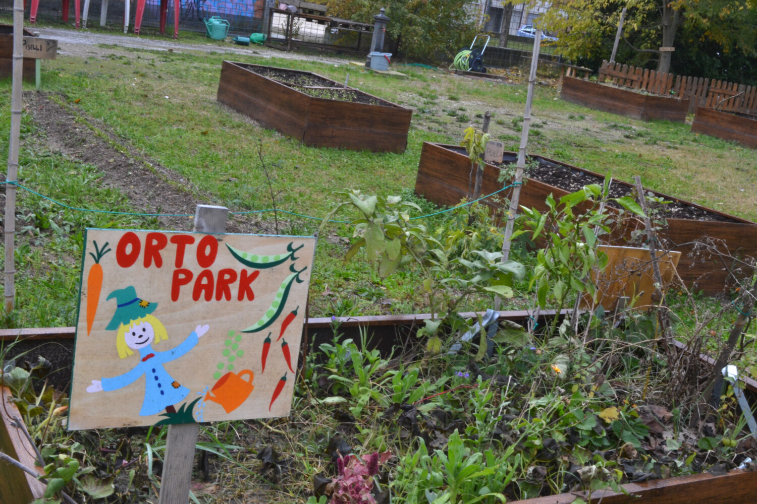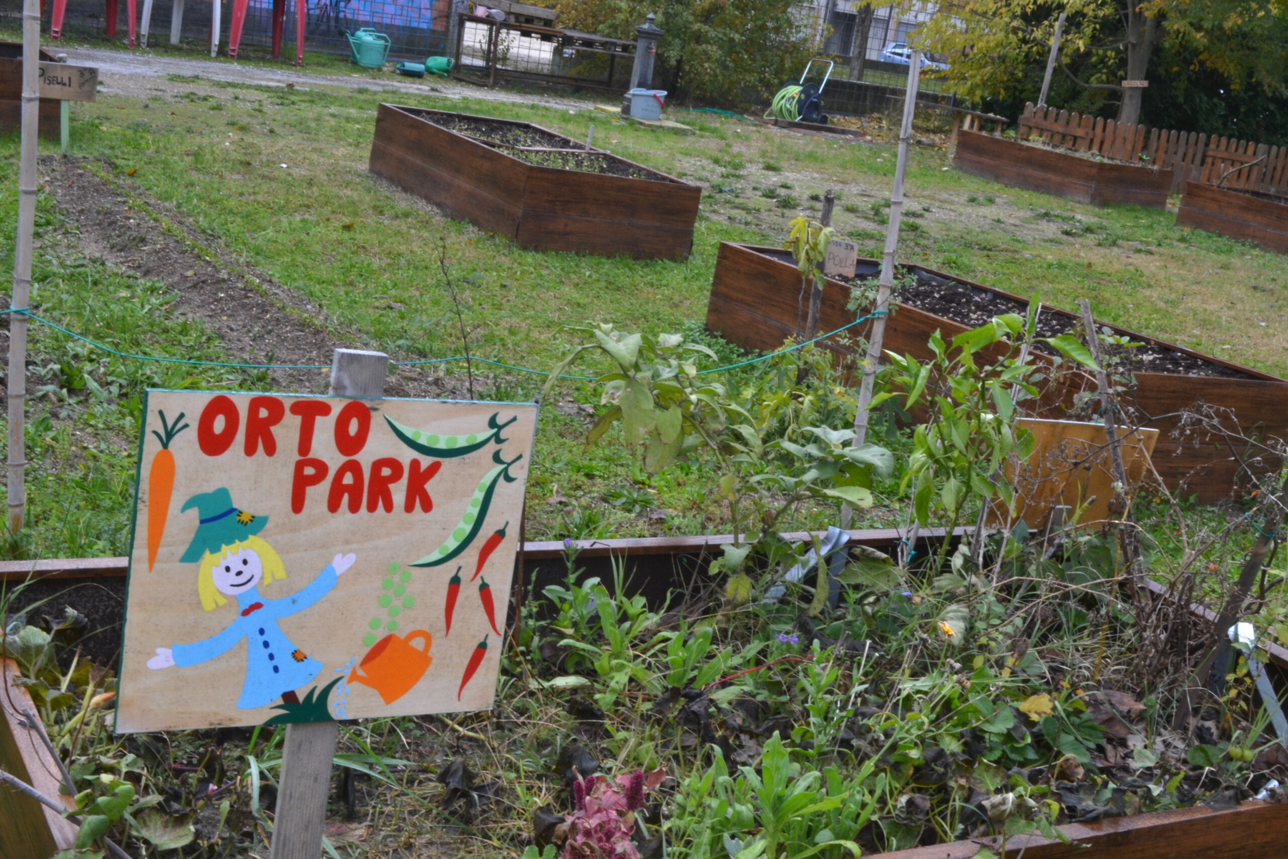 Intorno al 2016 vengono sgombrate le macerie della scuola materna e questo gruppo non ufficiale inizia a gestire il parco, inizialmente immaginando la creazione di un boschetto, con l’idea di far crescere orti e coltivazioni di qualità, man mano però il progetto si è strutturato in una direzione differente.