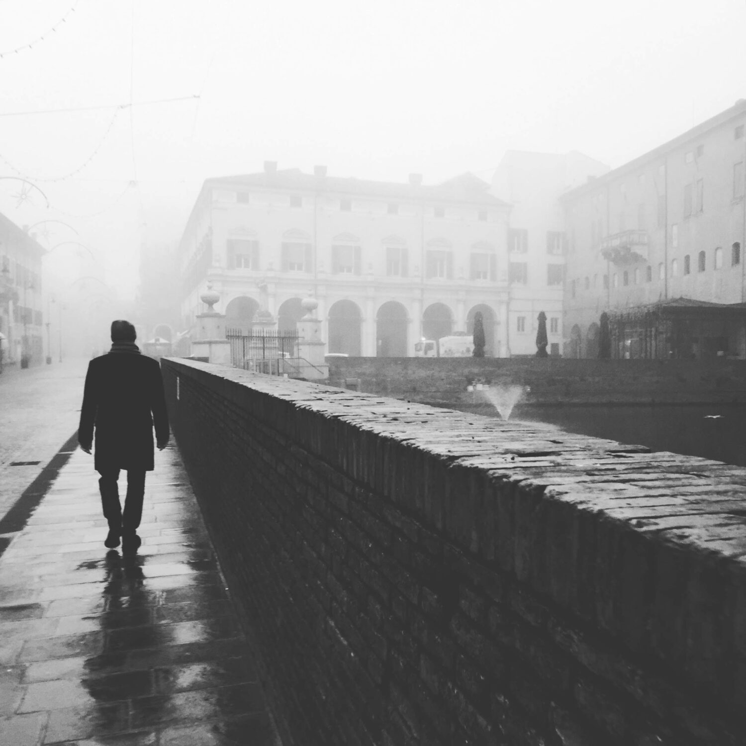 Dovessimo proprio avere bisogno di delineare in breve il contesto: la terra su cui poggia Ferrara è una linea retta che spesso tende verso il basso portando la città addirittura sotto al livello del mare. Questa è la ragione per la quale, come direbbe Osho (n.d.r. l’Osho romano della nota pagina Facebook), tra autunno ed inverno, ‘non è tanto il freddo, ma è l’umidità che t’ammazza’; a Ferrara più che in altri luoghi. E cosa ci combina l’umidità? Scientificamente, si incaglia tra le particelle solide sospese in aria, comprese quelle inquinanti che purtroppo non mancano mai in città, e pian piano si trasforma in nebbia saturando l’aria con il vapore acqueo. Una grigia copertina di rugiada scende sulla nostra bella città estense e qualcosa sparisce, qualcosa ritorna, qualcosa si nasconde. Capita che il sole del mattino pian piano si faccia strada tra le particelle e, con il suo esercito di raggi, riesca a separare la rete di tremende goccioline; ma, al contrario, con la stessa frequenza capita che nemmeno la potenza di fuoco del sole sia in grado di scalfirlo, lui, il NEBBIONE.